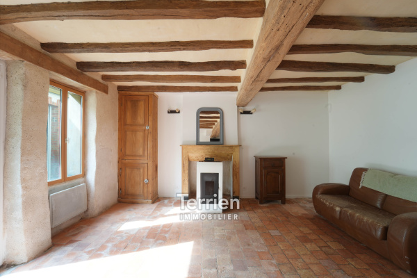 Située dans le bourg de la Jumelière, à proximité directe des commerces, à 10 minutes seulement de Chalonnes sur Loire. Une petite maison caractère de 65m2 au sol et 47m2 habitable située dans une ruelle au calme, un parfait mix entre le moderne et le charme de l'ancien (cheminée, tomettes, poutres). On entre directement dans la pièce de vie d'environ 22m2 muni d'un poêle à pelets intégré dans la cheminée d'époque, une cuisine semi-équipée fraîchement installée avec beaucoup de rangements. On retrouve à ce niveau un WC sous l'escalier. Arrivé au 1er étage, une grande chambre très charmante avec un coin dressing et une salle d'eau indépendante rénovée récemment. Le dernier niveau peut servir de chambre, de bureau ou d'un espace de rangements. Chauffage via un poêle à pellets et des radiateurs electriques, fenêtres en double vitrage. Idéal pour un premier achat ou un investissement. Pas de jardin, ni de garage vendu avec ce bien. DPE E - Honoraires à charge vendeur - TERRIEN IMMOBILIER
