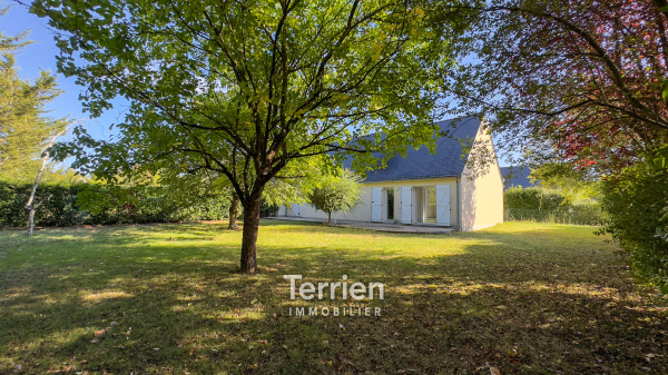 En plein centre de Saint Léger des Bois, à seulement 10 minutes d'Angers, cette maison de plain-pied de 95 m² habitables offre un cadre de vie fonctionnel et agréable. Elle se compose d’une entrée avec placard donnant sur un séjour-salon lumineux, d’une cuisine séparée, aménagée et équipée (four, plaque, hotte), ainsi qu’un dégagement desservant l’espace nuit. Celui-ci comprend trois chambres (12,65 m² – 10,69 m² – 10,67 m²), dont une avec placard intégré, une salle de bains et un WC indépendant. Un garage de plus de 26 m² vient compléter l’ensemble. À l’extérieur, vous profiterez d’une vaste terrasse d’environ 40 m², idéale pour vos repas en plein air, donnant sur un jardin arboré sans vis-à-vis, exposé sud-ouest pour un ensoleillement optimal. TERRIEN IMMOBILIER