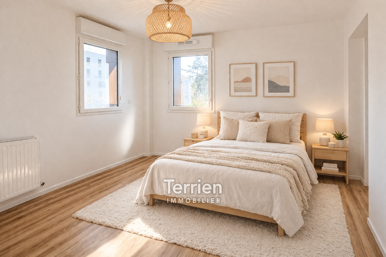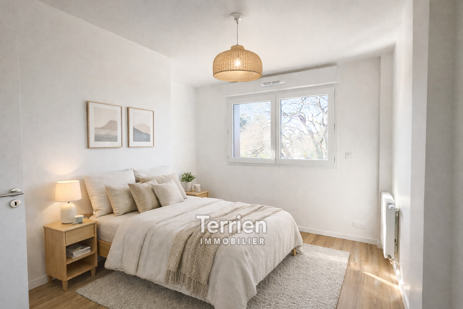EN VENTE chez TERRIEN IMMOBILIER. Au cœur d’un site naturel préservé, face au Parc Saint-Nicolas et aux rives du Brionneau à Angers, découvrez ce magnifique appartement 4 pièces de 84 m², situé au 2ème étage d’une résidence neuve à l’architecture contemporaine parfaitement intégrée à son écrin verdoyant offrant un équilibre parfait entre confort, modernité et sérénité. La pièce de vie lumineuse, prolongée par une agréable loggia, accueille un séjour avec cuisine ouverte, pensé pour des moments de partage et de douceur au quotidien. L’espace nuit se compose de trois chambres aux volumes harmonieux, d’une salle de bains et d’une salle d’eau, garantissant confort et intimité pour toute la famille. Une place de stationnement privative vient compléter ce bien aux prestations soignées. La résidence a été conçue pour offrir des performances thermiques et acoustiques de haut niveau ainsi qu’une qualité de l’air optimisée, assurant un bien-être durable. Norme RE2020 avec un niveau E2C2 (= faible impact carbone). Connecté directement au centre-ville par le tramway, ce quartier nouvelle génération conjugue nature, accessibilité et qualité de vie. Un appartement raffiné, idéal pour celles et ceux qui recherchent un cadre de vie inspirant et pérenne. PHOTOS avec projection d'aménagements réalisées avec l'IA. TERRIEN IMMOBILIER