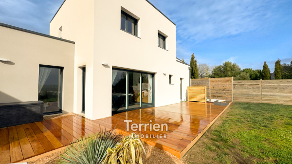 EN EXCLUSIVITE chez TERRIEN IMMOBILIER. Idéalement située dans un quartier calme et à proximité immédiate de l'ensemble des commodités que propose Saint-Georges-sur-Loire, cette maison construite en 2011 offre tous les atouts pour acceuillir une vie de famille, grace notamment à ses 4 chambres et son jardin arboré de 440 m². Dès l’entrée, vous serez séduits par une belle pièce de vie de 45 m², baignée de lumière grâce à sa double exposition et sa grande baie vitrée ouvrant sur la terrasse. Elle comprend un salon-séjour convivial et une cuisine ouverte entièrement équipée. Le bien propose une vie de plein pied graçe à une chambre et une salle d'eau avec douche à l'italienne. Un WC séparé et un espace lingerie complète ce niveau. A l’étage, le palier dessert 3 chambres toutes équipées de placards, une salle de bain en bon état, et un WC indépendant. La maison propose également un garage 16m2 avec un grenier pouvant facilement être aménagé en pièce habitable supplémentaire. Quant aux extérieurs, on retrouve un jardin arboré et clos de haies, une grande terrasse de 40m2 avec une pergolas, ainsi qu’un cabanon de jardin. Cette maison prête à vivre propose des prestations de qualité : volets roulants motorisés, chauffage au sol au rez-de-chaussée via pompe à chaleur air/eau, et ballon d’eau chaude solaire. Elle se révèle idéale pour une famille à la recherche de confort, de calme et de proximité avec les services. DPE B. Honoraires à charge acquéreurs. TERRIEN IMMOBILIER