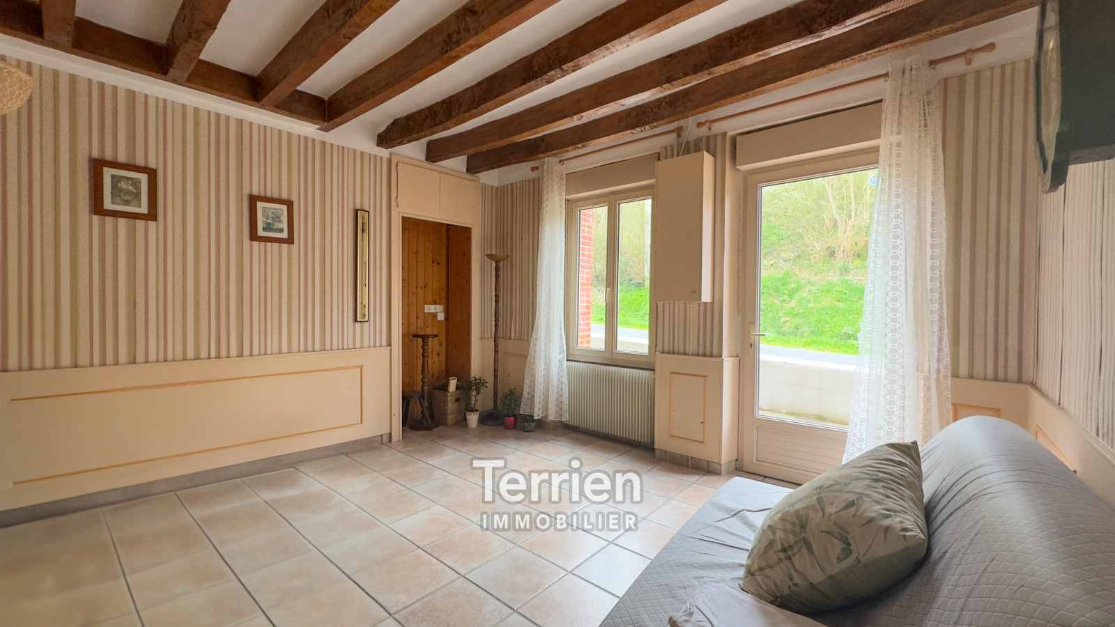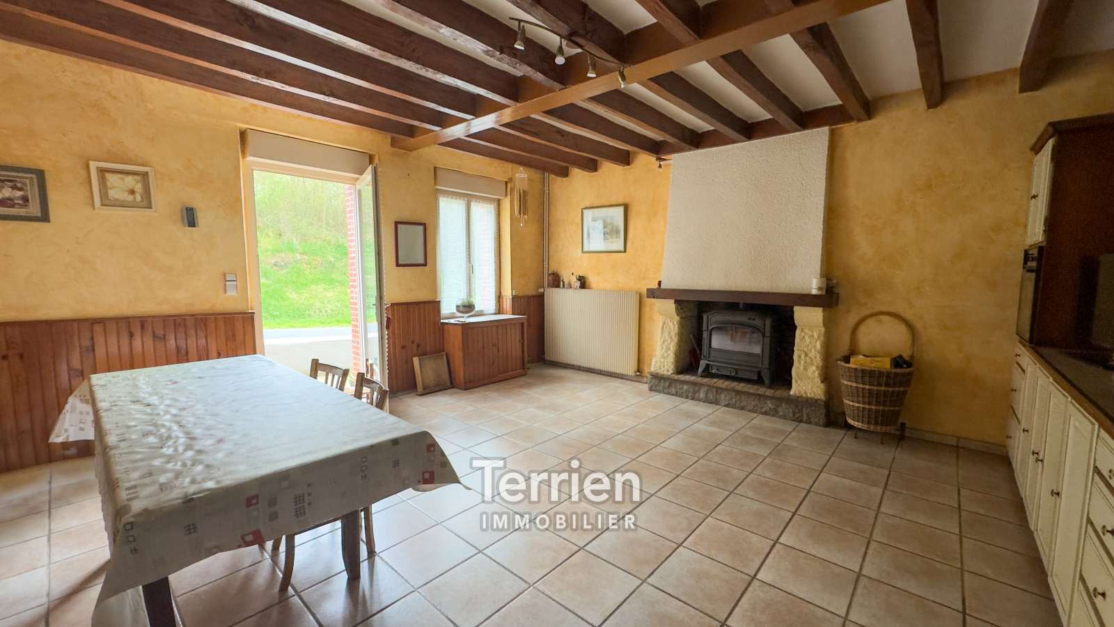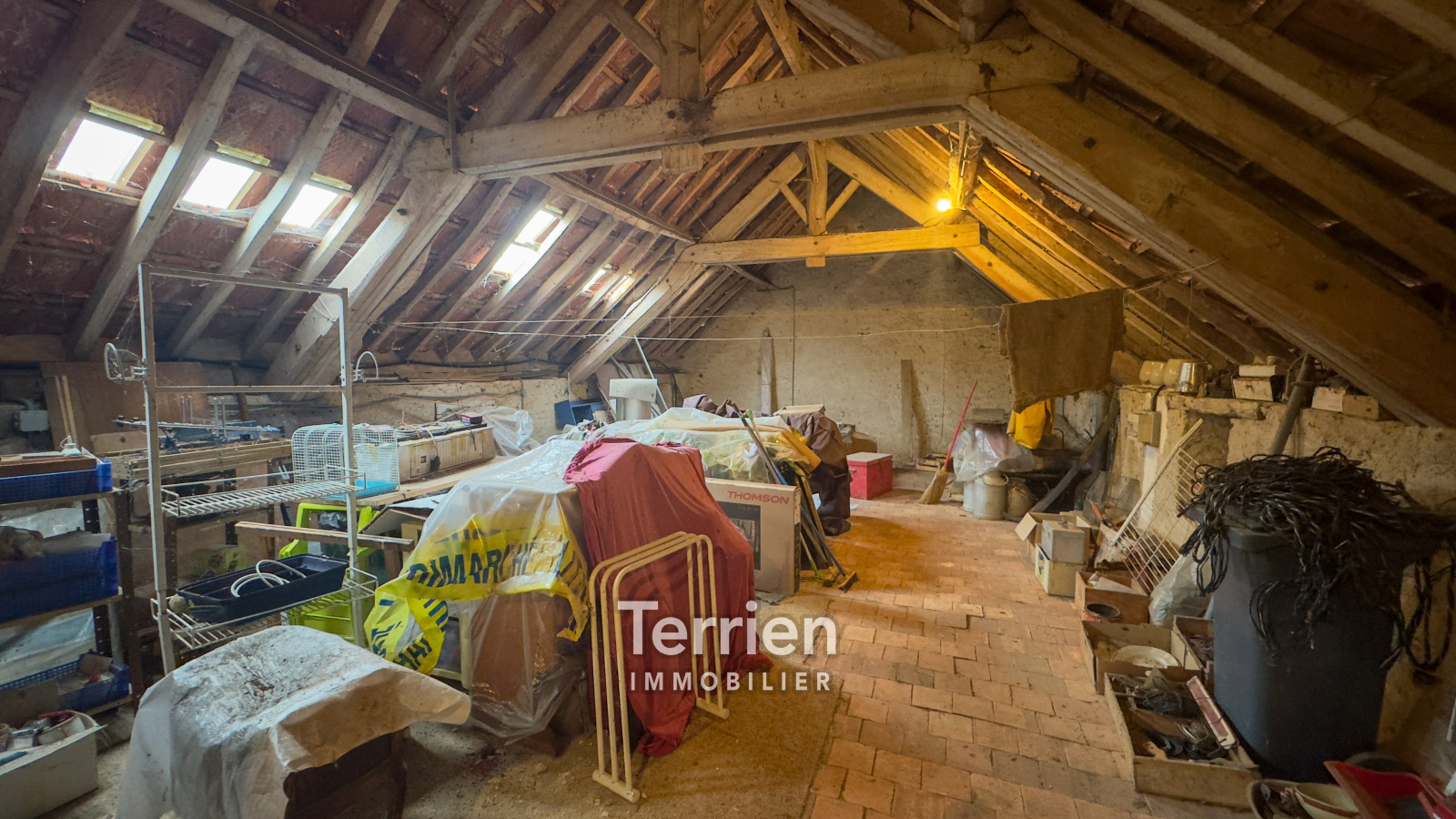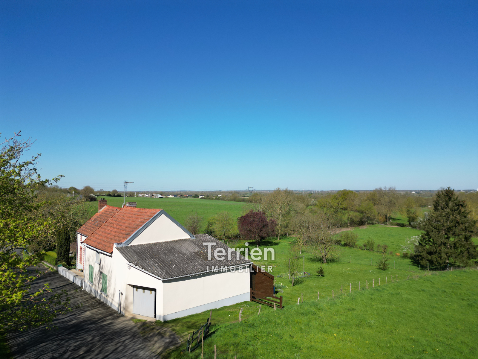 VENDU Chez TERRIEN IMMOBILIER Située à 4,5 kms du centre bourg de Montjean sur Loire et de la Pommeraye sur une parcelle de 3900m2. Il s’agit d’un ancien corps de ferme transformé en maison d’habitation de 4 pièces principales d’une surface habitable de 90m2 environ et d'un potentiel aménageable à l’étage 45m2. Il s’agit d’une maison en bon état général, avec du caractère grâce à son style ancien (encadrement de fenêtres en briques), poutres apparentes et belle hauteur sous-plafond de 2,70m sur les pièces de vie. L’ensemble de la maison est chauffée via une chaudière au fioul installée en 2007, et en complément dans la salle à manger un poêle à bois (ABELARD) installé il y a une quinzaine d’année. La maison est composée d’un double séjour exposé Sud avec une cuisine ouverte prenant l’ensemble de la largeur de la pièce, permettant un grand nombre de rangements. Un couloir mène au salon, une pièce séparé par un mur porteur agréable et permettant d’avoir une pièce au calme avec belle exposition. Dans la continuité, on retrouve deux chambres de belles tailles, des wc, une salle d’eau rénovée récemment. En plus, la maison dispose d'une lingerie avec système la chaudière installée à l’intérieur, une pièce en complément et un double garage. Sous la maison on retrouve une belle cave voutée. Côté jardin, les extérieurs sont très agréables avec une belle parcelle et un jardin en complément de l’autre côté de la route. Honoraires à charge acquéreurs. TERRIEN IMMOBILIER