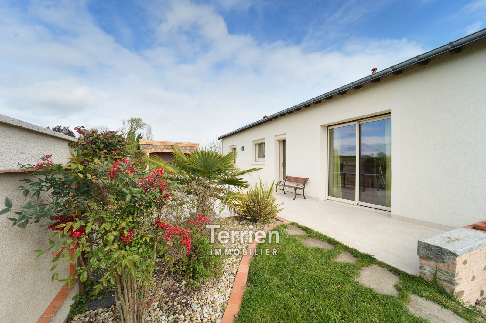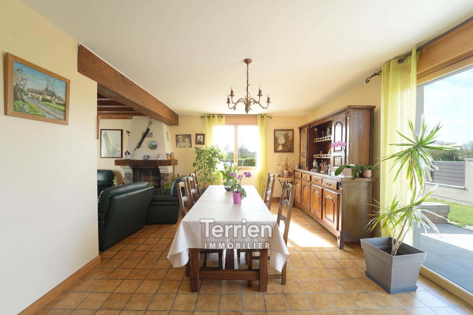 Située à 5 minutes de Chalonnes, sur la commune de Saint-Laurent-de-Plaine, une maison construite en 1980 parfaitement entretenue, bénéficiant d'une vue dégagée sur la campagne, et proposant une surface habitable de 127m2, sur parcelle végétalisée de 1491m2. Profitant d'une vie de plain pied, la maison s'ouvre sur une entrée dotée de placards, et amenant vers une belle pièce de vie (salon et salle à manger) à la lumière traversante et agrémentée d'une cheminée bois à foyer fermé. Dans la continuité, on retrouve une cuisine indépédante avec des meubles de très bonne facture et équipée (four, hotte, plaques gaz, lave-vaisselles, frigidaire). Un couloir oriente vers 3 chambres équipées de dressing, une salle d'eau rénovée récemment avec douche à l'italienne et une vasque, ainsi qu'un WC séparé avec un lave-mains. Au sous-sol, un grand garage pouvant acceuillir au moins 2 véhicules, un atelier indépendant, une cave et une chaufferie. Egalement une 4ème chambre, ainsi qu'une salle d'eau et un WC. A l'extérieur, la terrasse carrelée est orientée Sud/Sud-Ouest, et un joli patio d'été permet de se détendre à l'ombre. On retrouve également un bucher sur le coté de la maison, un grand potager avec une cuve d'eau enterrée de 3500 litres, et une cour pour stationnée accessible par un portail motorisée. Cette maison est saine et soignée, et tire parti d'huisseries (aluminium et bois) récentes toutes équipées de volets roulants électriques, ainsi que d'une isolation des combles optimisée. DPE E. Honoraires à charge acquéreurs. TERRIEN IMMOBILIER