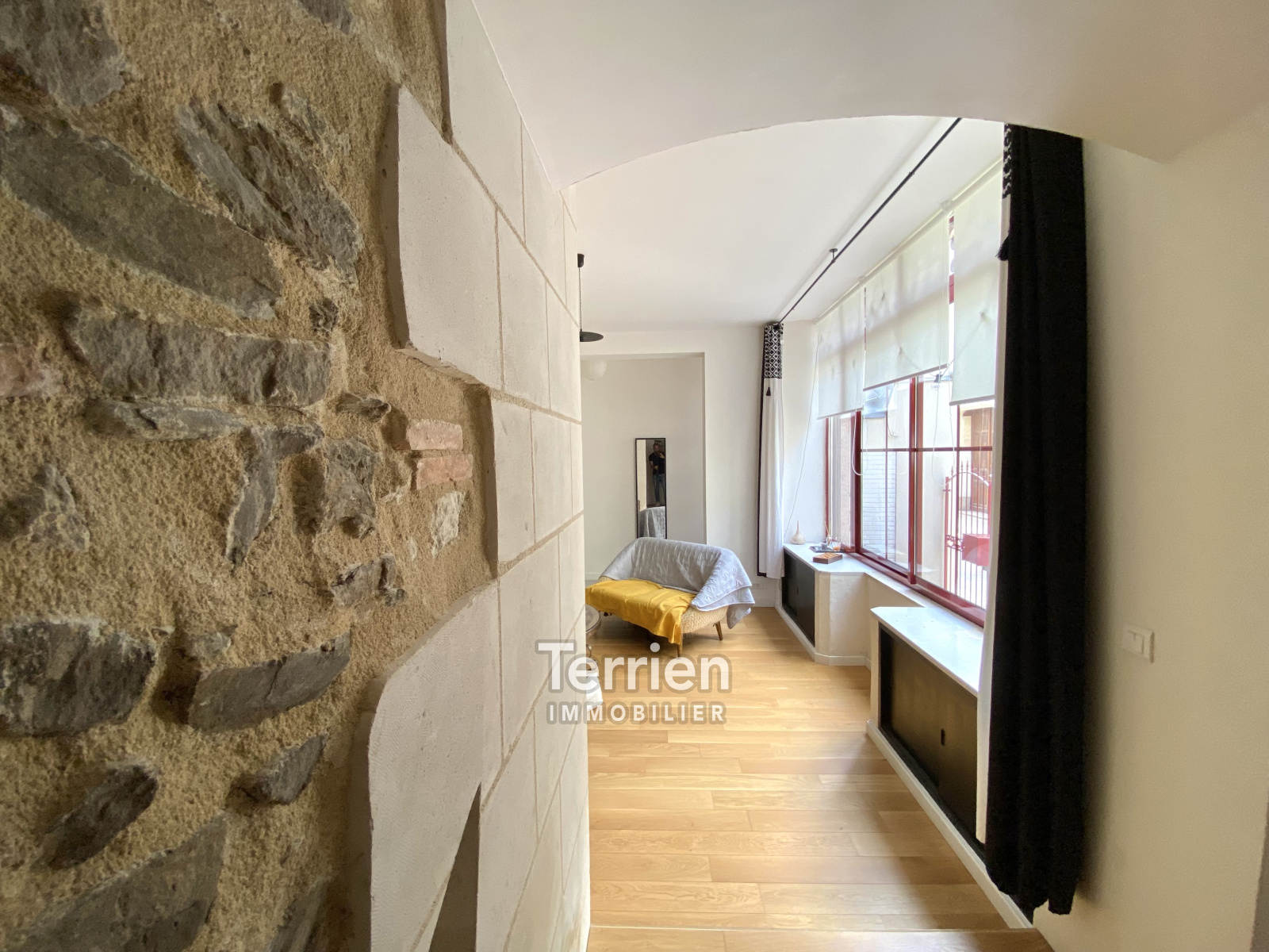 Localisée dans l'hypercentre de Chalonnes-sur-Loire et à quelques pas de la Loire. Une maison d’habitation d’environ 180m2 habitable / 230m2 au sol sur un parcelle de terrain de 141m2. Une ancienne boucherie réhabilitée en maison de caractère avec sa façade en mosaïque alliant le moderne et l’ancien. Un portillon permet l’accès à la maison, une entrée desservant un salon lumineux et spacieux (HSP 3.00m) dû au grande ouverture en aluminium qui donne un cachet indéniable, un espace bureau (tuffeau, pierre apparente). Dans la continuité, un séjour avec poêle à granulés et poutres bénéficiant toujours d’une très belle HSP, une cuisine ouverte (four, plaques, hotte et lave-vaisselle), un cellier. Le tout menant à une jolie courette bien exposée. Une buanderie dotée de véritables carreaux de ciments et son authentique porte installée depuis l’ancienne boucherie, un WC complète le RDC. Au 1er étage trois chambres avec parquet dont une avec espace bureau ou possibilité de créer un dressing, une salle de bains (baignoire, lavabo) ainsi qu'un WC indépendant. Au 2ème étage un grand dégagement desservant deux chambres, une salle d’eau (reste à créer), une mezzanine (possibilité de créer une salle de jeux) et un WC indépendant. DPE C. Honoraires à charges acquéreur. TERRIEN IMMOBILIER