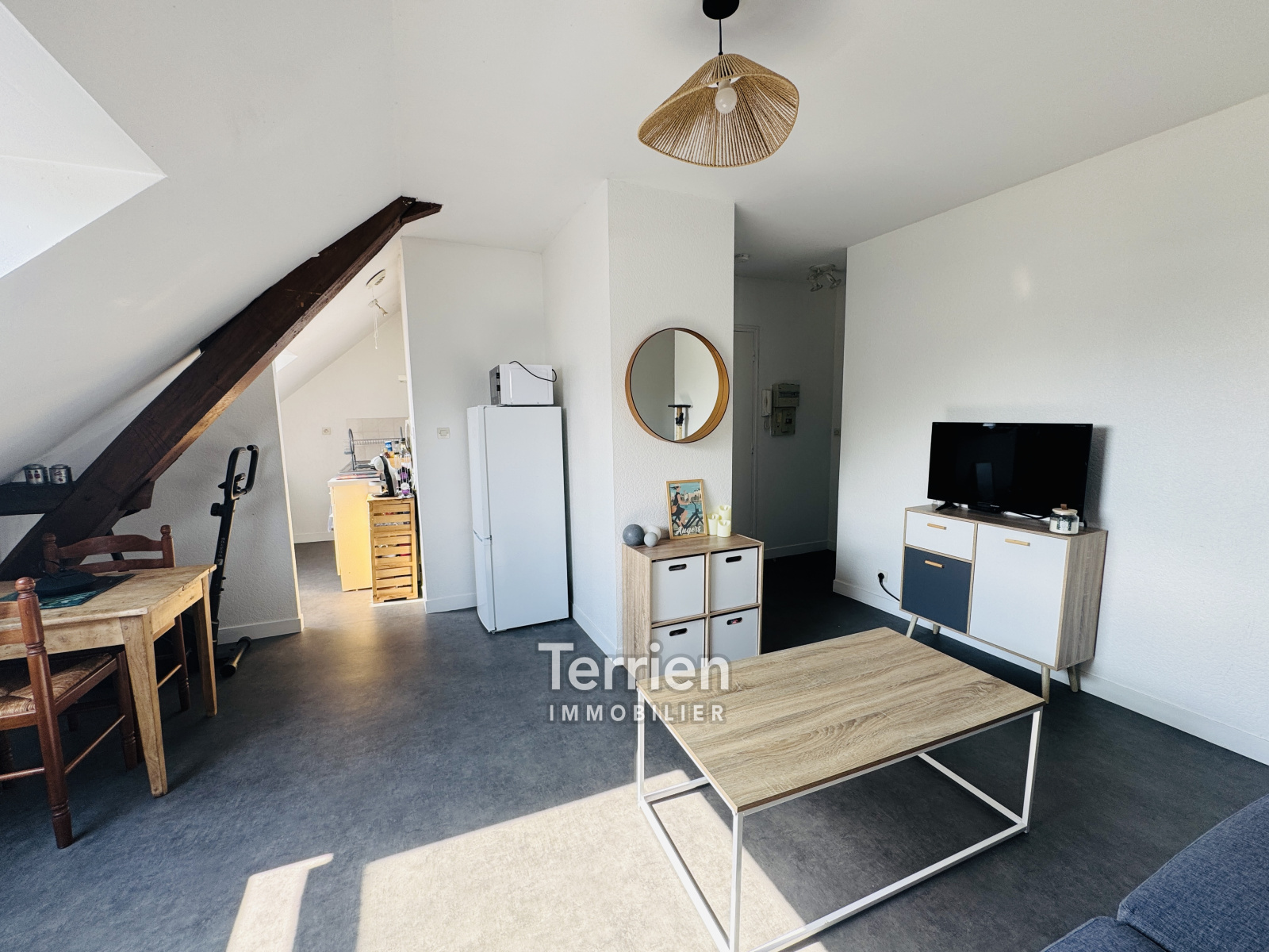 VENDU avec TERRIEN IMMOBILIER. Situé au troisième et dernier étage d'un immeuble bien entretenu en plein coeur de Chalonnes sur Loire, cet appartement est actuellement loué jusqu'en mai 2026, avec un loyer mensuel de 380€ avec une provision sur charges incluses (20€). Vous y trouverez une pièce de vie lumineuse, une cuisine, une chambre sépraée ainsi qu'une salle de bains en bon état. Le chauffage est entièrement électrique et les fenêtres sont en double vitrage. L'appartement dispose d'un local à vélo. La répartition des charges pour ce lot sont les suivantes (40/1000èmes) des parties communes générales, corespondant à un montant de 312€/an (comprenant l'eau et les ordures ménagères). Honoraires à la charge de l'acquéreur. TERRIEN IMMOBILIER
