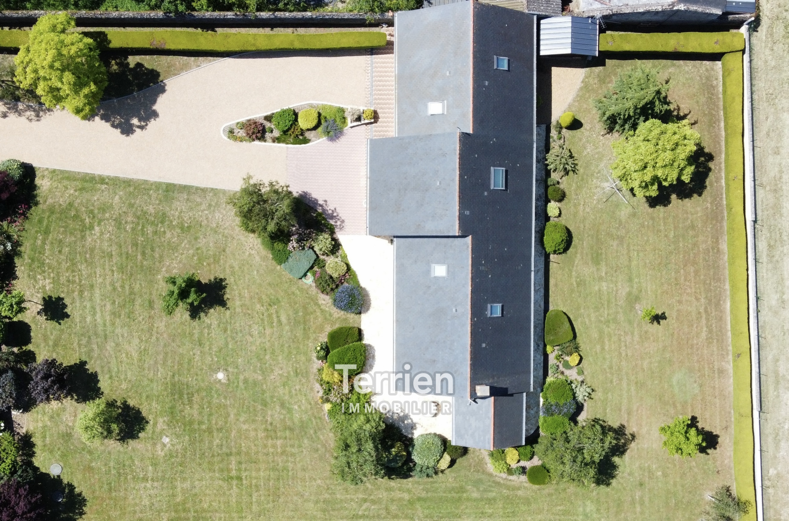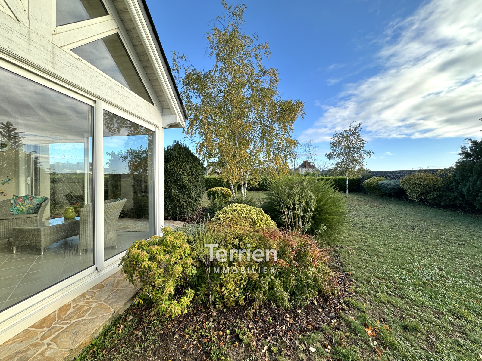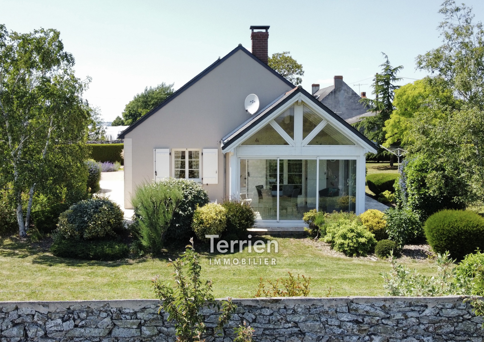 Dans un environnement verdoyant au cœur d'Ardenay, se trouve une charmante maison construite en 2002, avec un terrain d'une surface de 2054m2. La maison est construite sur deux niveaux. À l'entrée, un grand salon-séjour de 40m2 donnant sur une cuisine aménagée équipée (four, plaques à induction, hotte). Une extension exposée à l'est est entièrement vitrée (double vitrage) et isolée sous la toiture. Le rez-de-chaussée présente une grande surface habitable avec deux chambres, chacune équipée de rangements. Il y a également deux toilettes, une salle d'eau avec une douche, une baignoire et une vasque. Une pièce supplémentaire avec une petite cuisine pouvant servir de local mis à disposition pour un professionnel. À l'étage, se trouve une grande chambre de 38m2, une pièce palière avec une salle d'eau et un grand bureau avec une bibliothèque. Un grand garage de 60m2 avec des grands rangements et l’emplacement pour une voiture. La maison dispose d'un système de récupération d'eau de 9000L et d'une alarme. DPE D. Honoraires à charge acquéreur TERRIEN IMMOBILIER