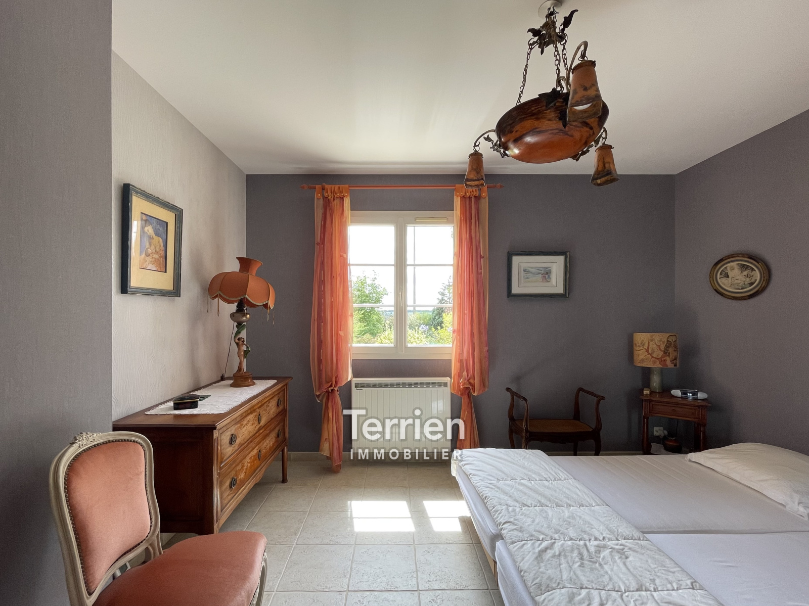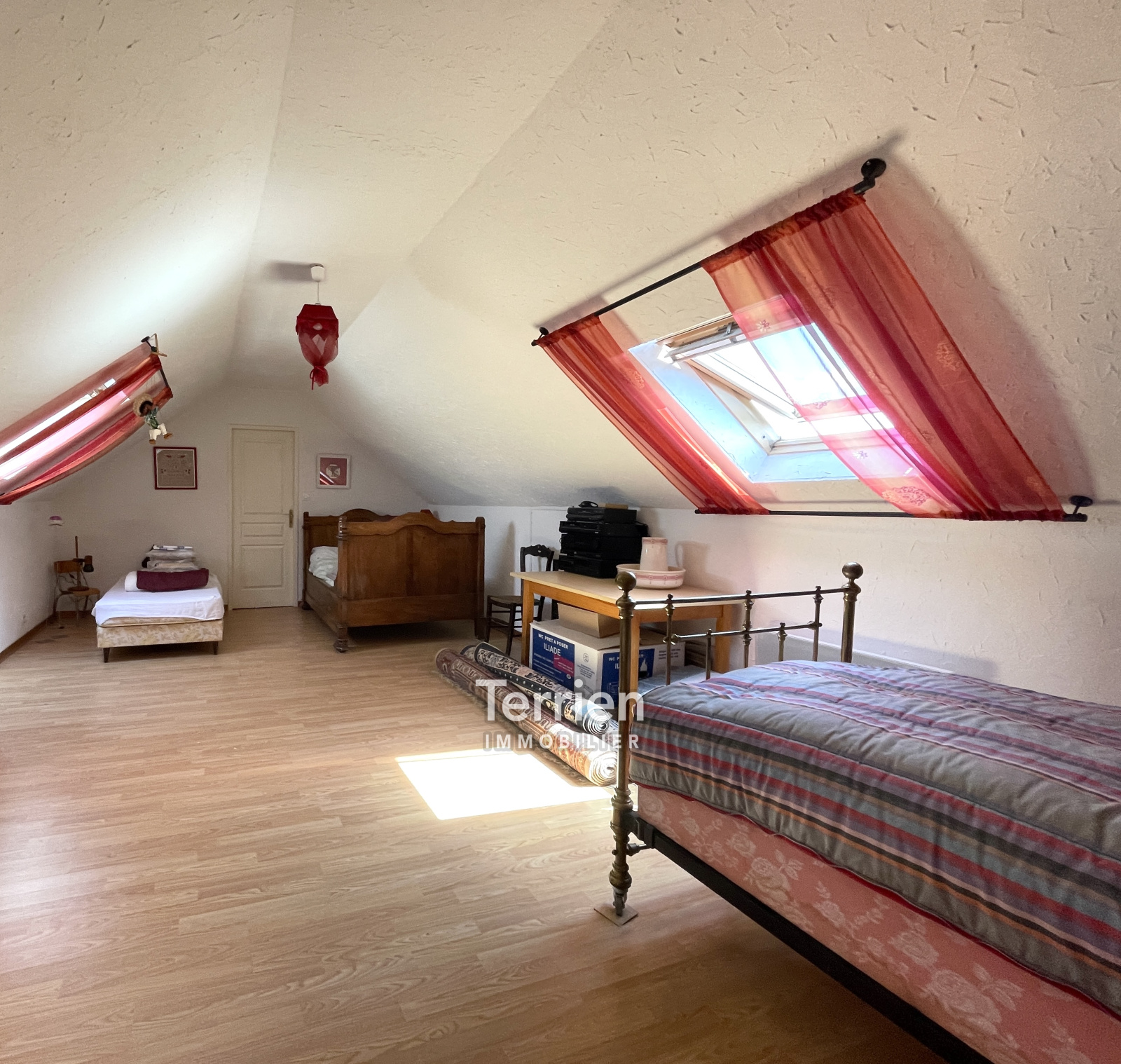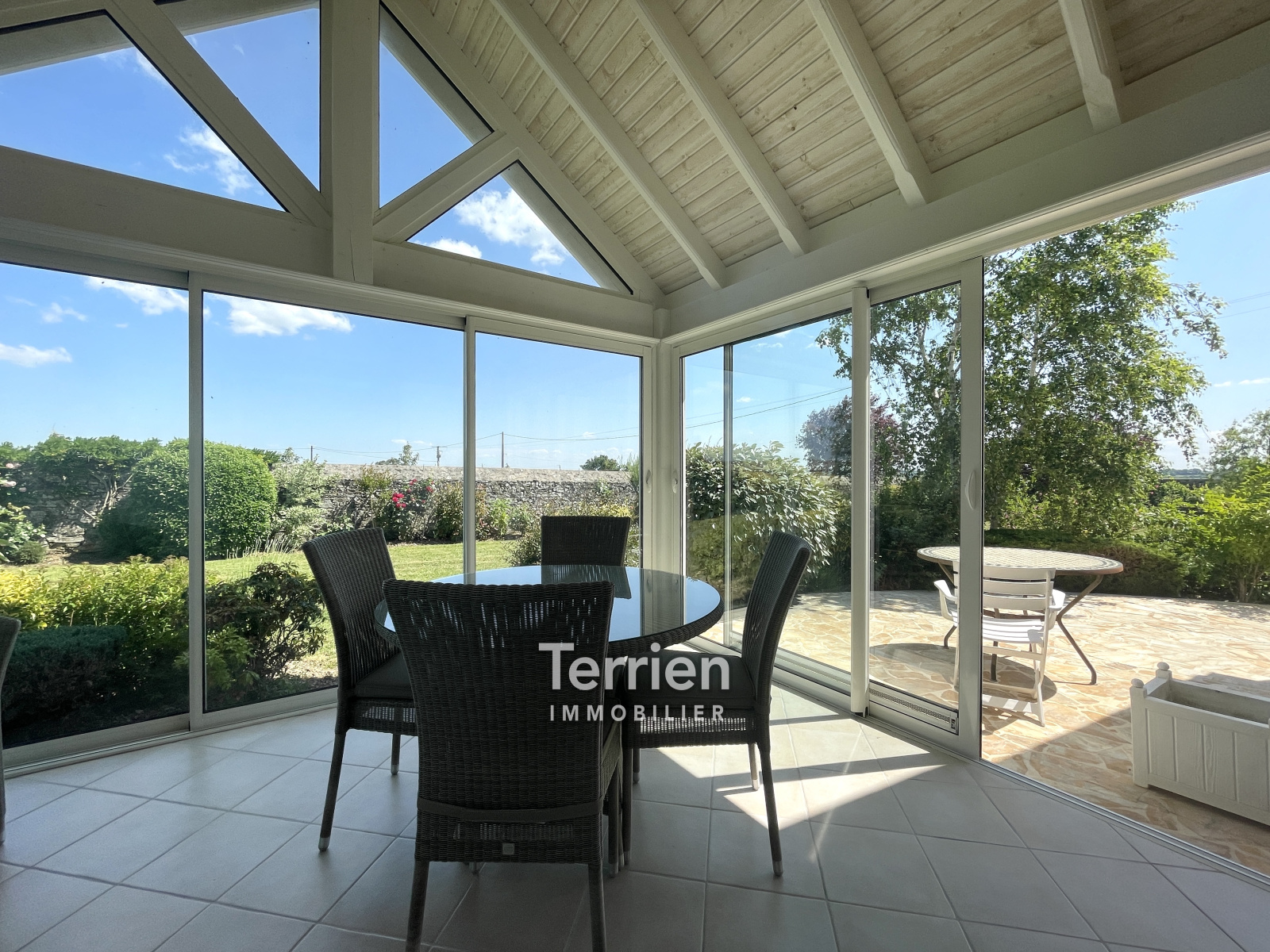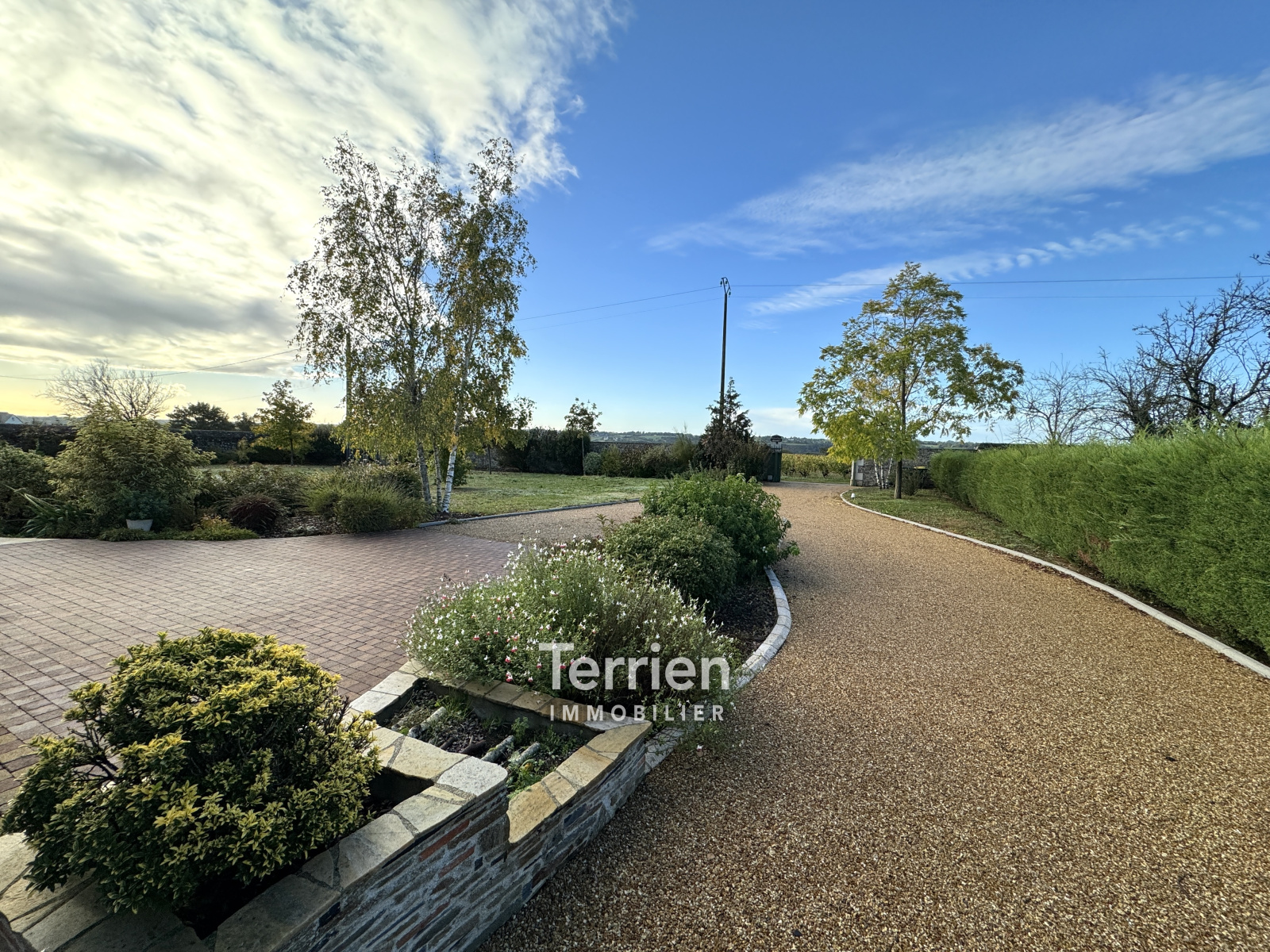 Dans un environnement verdoyant au cœur d'Ardenay, se trouve une charmante maison construite en 2002, avec un terrain d'une surface de 2054m2. La maison est construite sur deux niveaux. À l'entrée, un grand salon-séjour de 40m2 donnant sur une cuisine aménagée équipée (four, plaques à induction, hotte). Une extension exposée à l'est est entièrement vitrée (double vitrage) et isolée sous la toiture. Le rez-de-chaussée présente une grande surface habitable avec deux chambres, chacune équipée de rangements. Il y a également deux toilettes, une salle d'eau avec une douche, une baignoire et une vasque. Une pièce supplémentaire avec une petite cuisine pouvant servir de local mis à disposition pour un professionnel. À l'étage, se trouve une grande chambre de 38m2, une pièce palière avec une salle d'eau et un grand bureau avec une bibliothèque. Un grand garage de 60m2 avec des grands rangements et l’emplacement pour une voiture. La maison dispose d'un système de récupération d'eau de 9000L et d'une alarme. DPE D. Honoraires à charge acquéreur TERRIEN IMMOBILIER