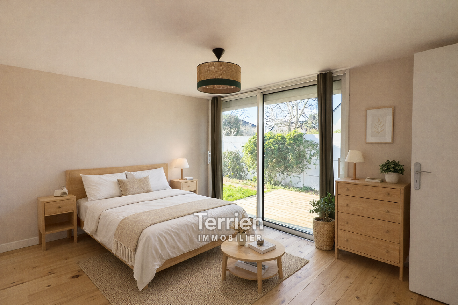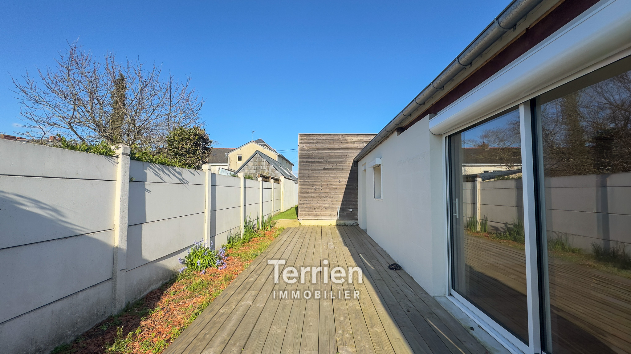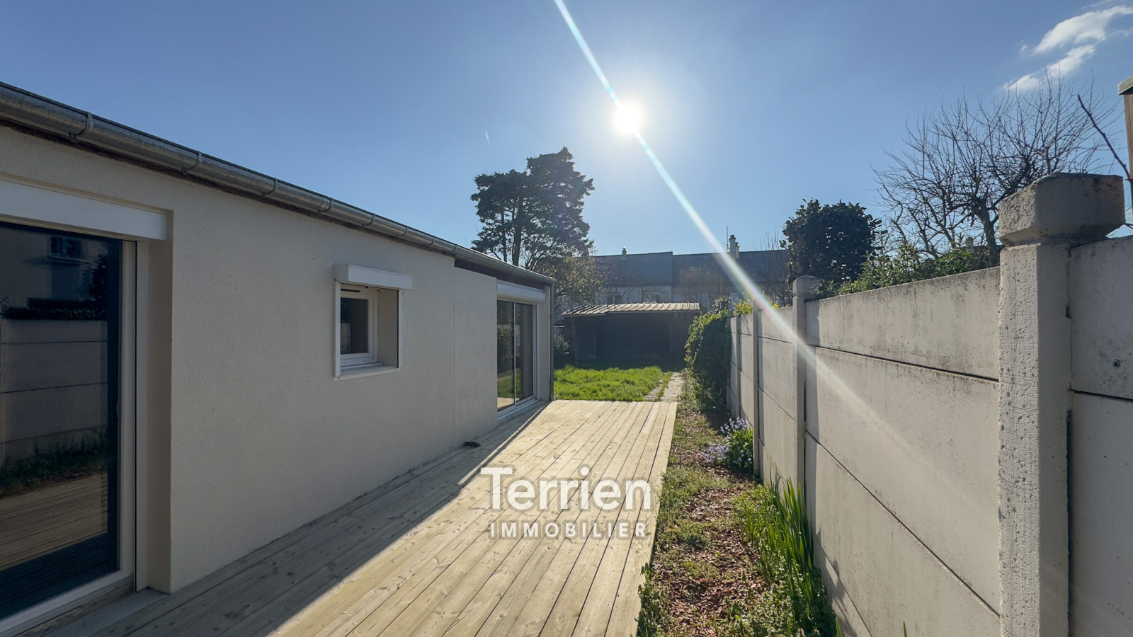 EN VENTE chez TERRIEN IMMOBILIER. Une maison de plain-pied, offrant 102 m2 habitables sur un terrain de 336 m2. À l’abri des regards et en retrait de la rue, cette maison séduit immédiatement par son environnement paisible et sa situation privilégiée, à proximité immédiate des commerces et services du quotidien. La maison s’organise autour d’un bel espace de vie lumineux, pensé pour la convivialité. Le séjour s’ouvre naturellement sur une cuisine créant un lieu chaleureux idéal pour recevoir famille et amis. L’espace nuit se compose de trois chambres ainsi que d’un bureau indépendant, facilement transformable en quatrième chambre ou en espace dédié au télétravail selon vos besoins. Deux salles d’eau viennent compléter l’ensemble, garantissant un confort optimal pour toute la famille. À l’extérieur, le charme opère pleinement. Le jardin sans aucun vis-à-vis, constitue un véritable havre de paix. Une élégante terrasse en bois invite à profiter des beaux jours en toute intimité. Un cabanon pratique offre un espace supplémentaire pour le rangement ou le bricolage. Une maison fonctionnelle et lumineuse, idéale pour celles et ceux qui recherchent le confort d’un plain-pied au calme, sans renoncer à la proximité des commodités. TERRIEN IMMOBILIER