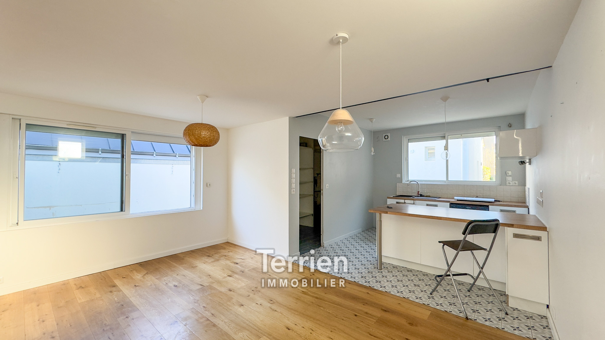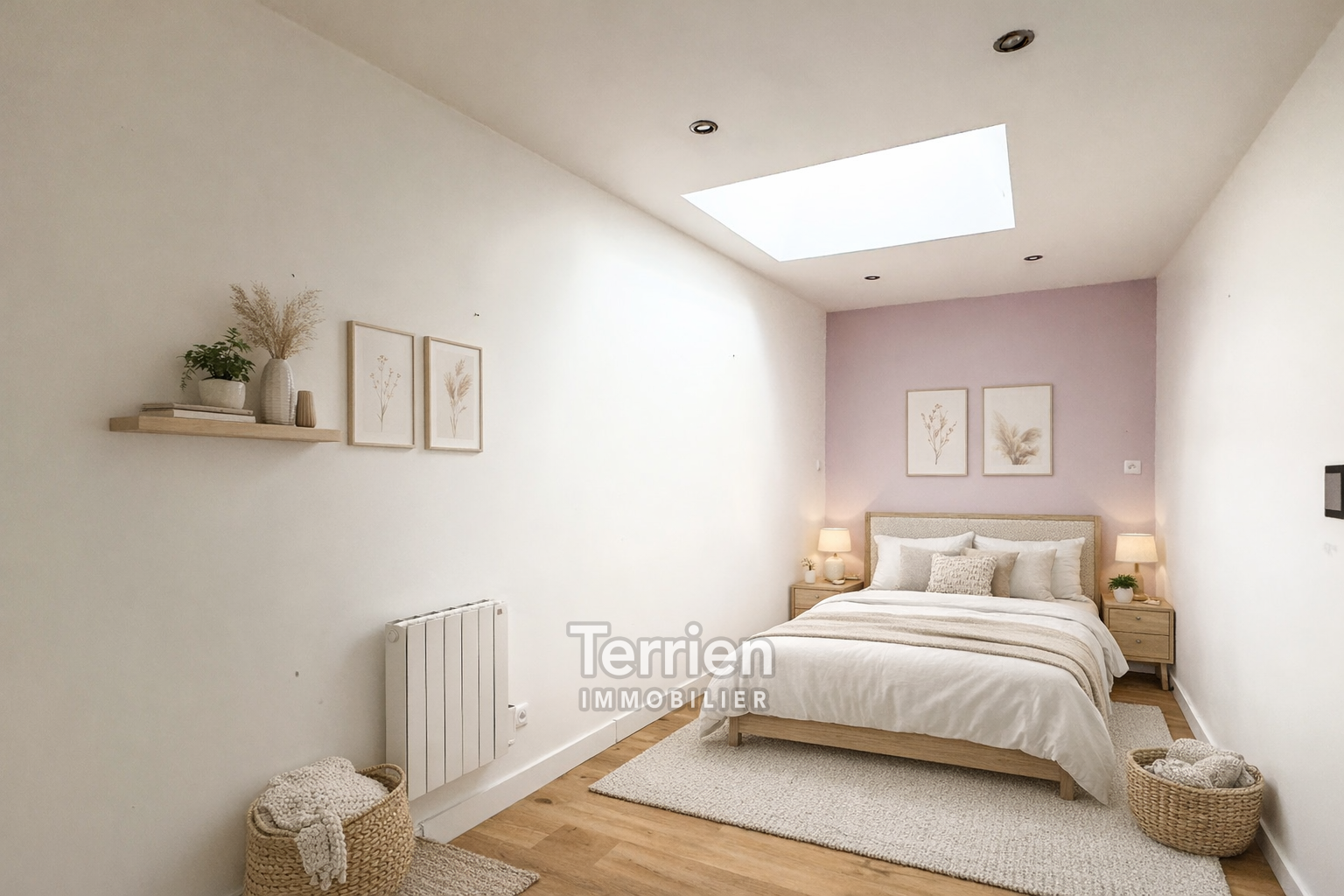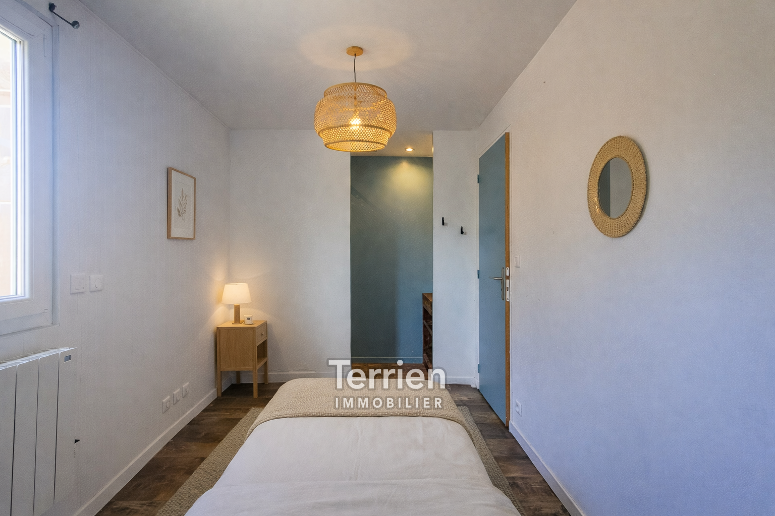 EN VENTE chez TERRIEN IMMOBILIER. Une maison de plain-pied, offrant 102 m2 habitables sur un terrain de 336 m2. À l’abri des regards et en retrait de la rue, cette maison séduit immédiatement par son environnement paisible et sa situation privilégiée, à proximité immédiate des commerces et services du quotidien. La maison s’organise autour d’un bel espace de vie lumineux, pensé pour la convivialité. Le séjour s’ouvre naturellement sur une cuisine créant un lieu chaleureux idéal pour recevoir famille et amis. L’espace nuit se compose de trois chambres ainsi que d’un bureau indépendant, facilement transformable en quatrième chambre ou en espace dédié au télétravail selon vos besoins. Deux salles d’eau viennent compléter l’ensemble, garantissant un confort optimal pour toute la famille. À l’extérieur, le charme opère pleinement. Le jardin sans aucun vis-à-vis, constitue un véritable havre de paix. Une élégante terrasse en bois invite à profiter des beaux jours en toute intimité. Un cabanon pratique offre un espace supplémentaire pour le rangement ou le bricolage. Une maison fonctionnelle et lumineuse, idéale pour celles et ceux qui recherchent le confort d’un plain-pied au calme, sans renoncer à la proximité des commodités. TERRIEN IMMOBILIER