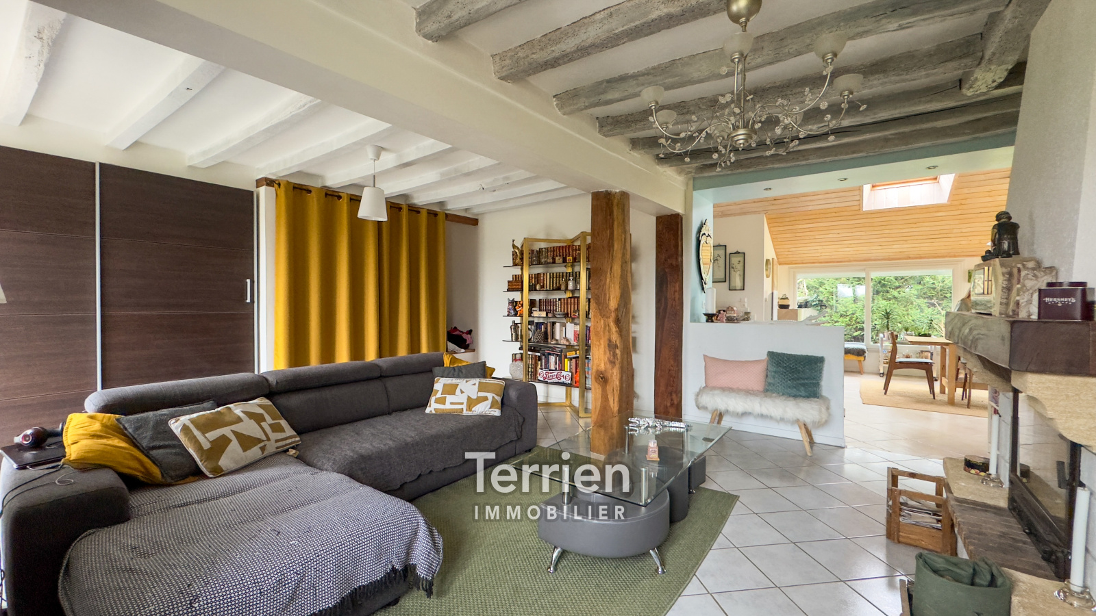 Située à seulement 20 km d'Angers, dans la charmante commune de Saint-Georges-sur-Loire, cette maison ancienne séduit par son authenticité. Avec une superficie habitable de 103 m² sur un terrain verdoyant de 930 m², elle offre un cadre de vie agréable. L'accès au jardin clôturé se fait par un portail motorisé tout juste installé, et vous pourrez profiter d'une terrasse de près de 40 m², bien protégée des regards, idéale pour vos moments de détente. Le jardin, orienté à l’ouest, est spacieux et sans vis-à-vis. À l'intérieur, le rez-de-chaussée se distingue par sa luminosité grâce à de nombreuses fenêtres. La pièce de vie comprend un séjour avec une hauteur sous plafond de plus de 3,50 m, offrant une vue dégagée sur le jardin, ainsi qu'une cuisine moderne et entièrement équipée. Vous y découvrirez également un salon agrémenté d'une cheminée à insert et de poutres apparentes qui ajoutent au caractère de ce lieu. La partie nuit se compose d'une grande chambre avec dressing, d'un bureau/chambre en enfilade, ainsi que d'une salle de bains fraîchement rénovée et d'un WC séparé. À l'étage, une vaste chambre au calme propose un coin agréable pour se relaxer. À l'extérieur, vous profiterez d'un espace de détente avec pergola, d'un garage et d'une petite dépendance en pierres. L'ensemble de la maison est chauffé par des radiateurs électriques récents et la cheminée à insert. En résumé, cette propriété est idéale pour ceux qui souhaitent vivre à proximité des commodités tout en profitant d'un cadre paisible à la campagne. Honoraires à la charge de l'acquéreur. TERRIEN IMMOBILIER.