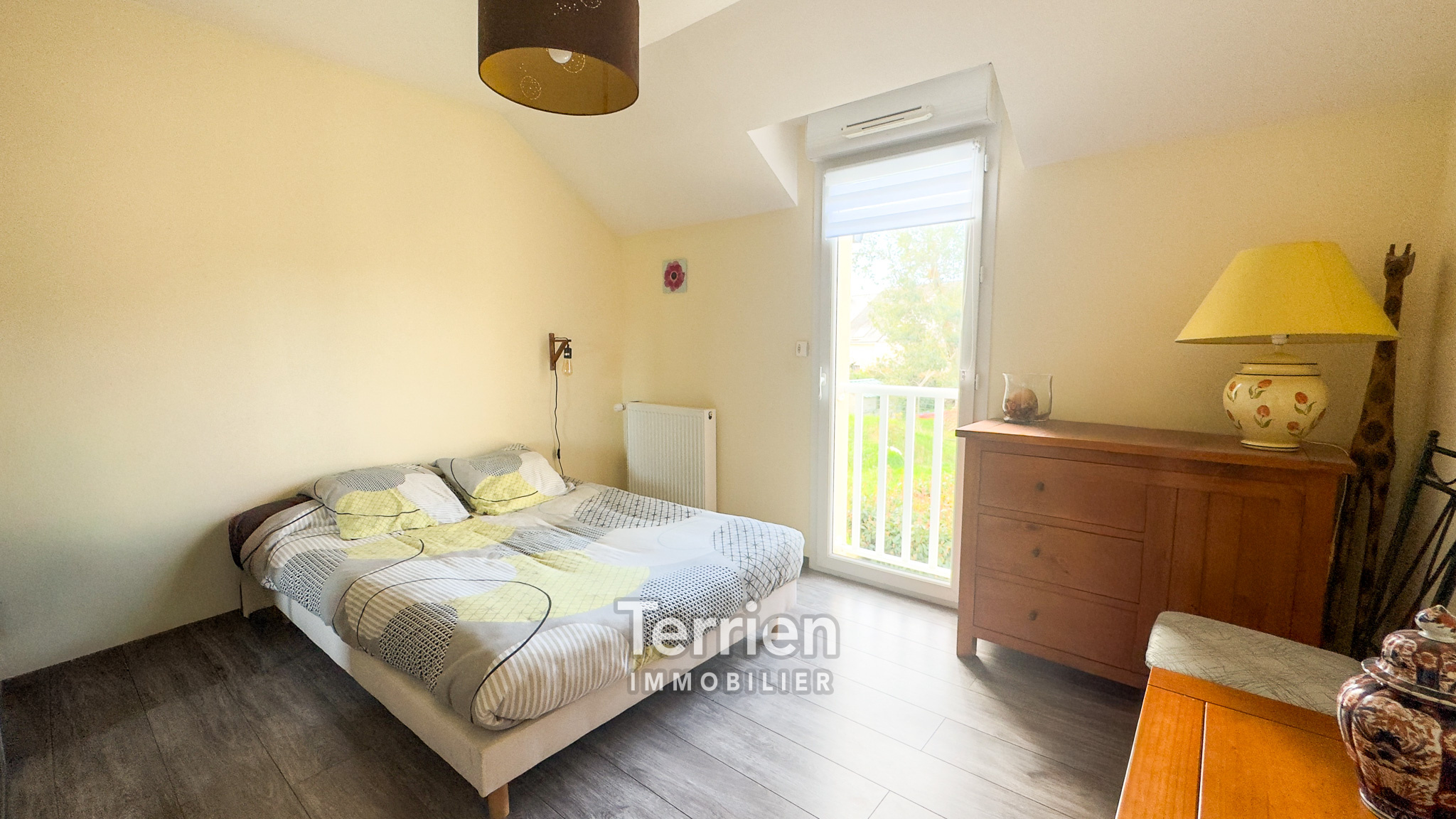 Dès l’entrée, la maison dévoile des volumes harmonieux et une distribution pensée pour le confort du quotidien. Le rez-de-chaussée s’organise autour d’une belle pièce de vie lumineuse, où le salon et la salle à manger s’ouvrent naturellement sur une cuisine aménagée et entièrement équipée de la marque Schmidt. L’ensemble est sublimé par un poêle à bois Aäsgard, apportant une atmosphère chaleureuse et conviviale. Une arrière-cuisine d’environ 10 m² vient compléter cet espace et offre un réel confort de rangement et d’organisation. Toujours au rez-de-chaussée, la maison dispose d’une chambre, idéale pour une vie de plain-pied, un bureau ou une chambre d’amis, ainsi que d’une salle d’eau moderne avec douche à l’italienne et de WC indépendants. Le chauffage au sol, alimenté par une chaudière gaz, assure une chaleur douce et homogène sur ce niveau. Un garage attenant de 26 m² vient parfaire les prestations. À l’étage, l’espace nuit se compose de quatre chambres, toutes équipées de placards intégrés et offrant de beaux volumes, dont deux bénéficient d’un balcon privatif, apportant lumière et ouverture sur l’extérieur. Une salle de bains spacieuse, équipée à la fois d’une douche, d’une baignoire et d’une double vasque, ainsi que des WC séparés et un placard sur le palier, complètent ce niveau. Côté confort, la maison est équipée de menuiseries en double vitrage avec volets roulants électriques, garantissant une excellente isolation thermique et phonique.