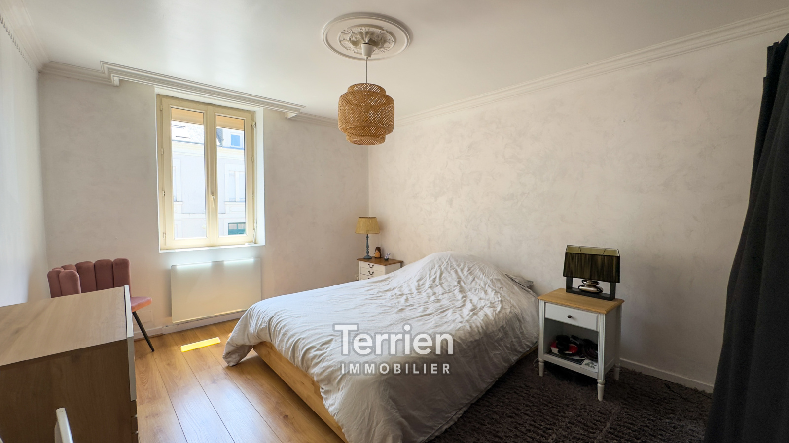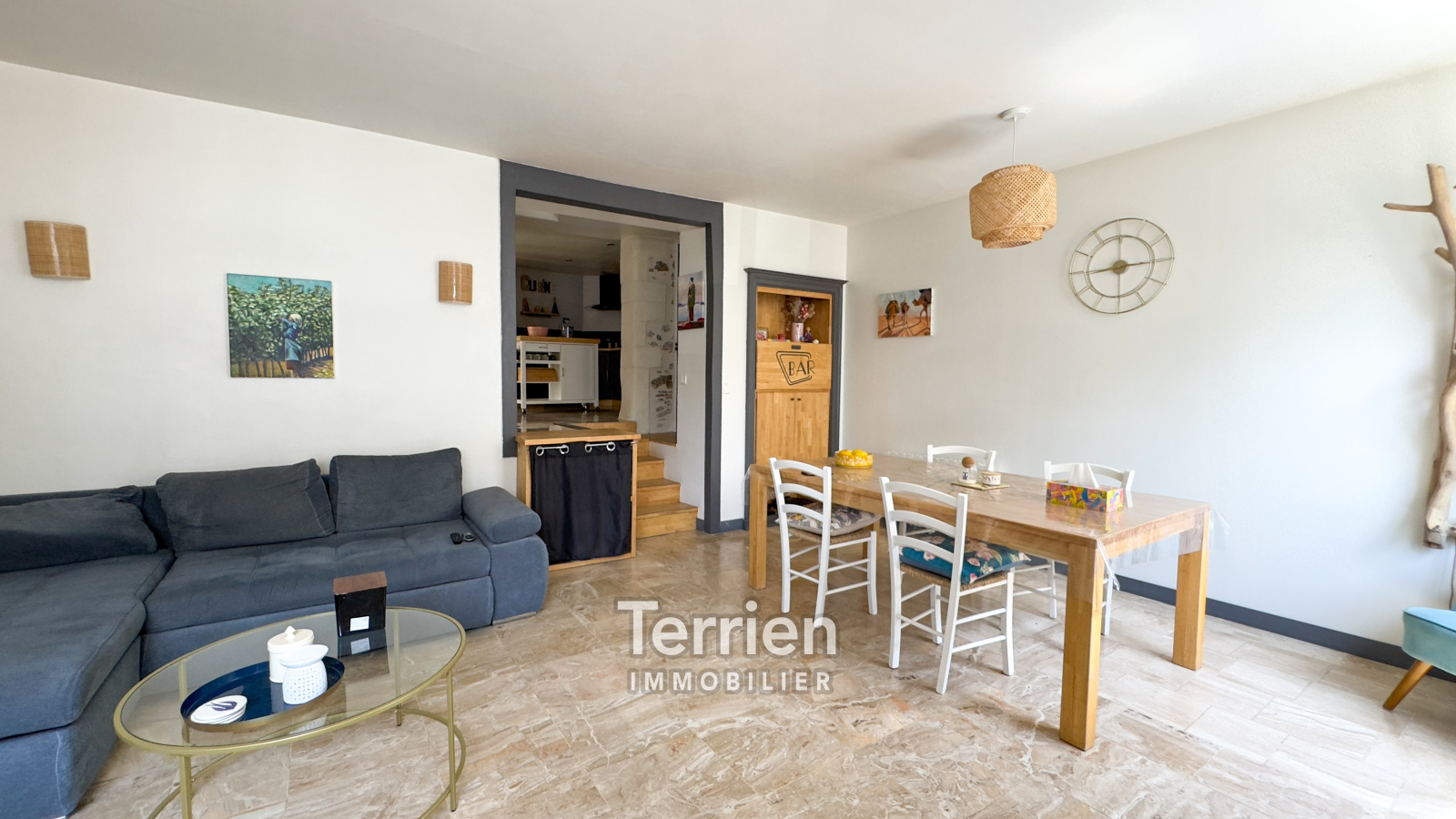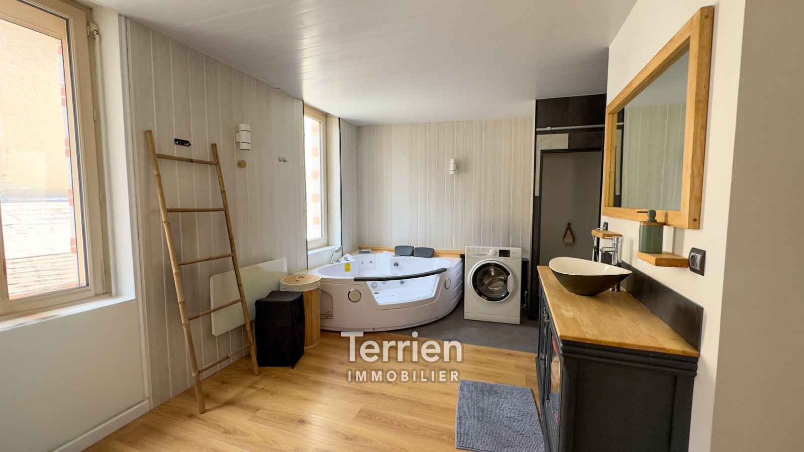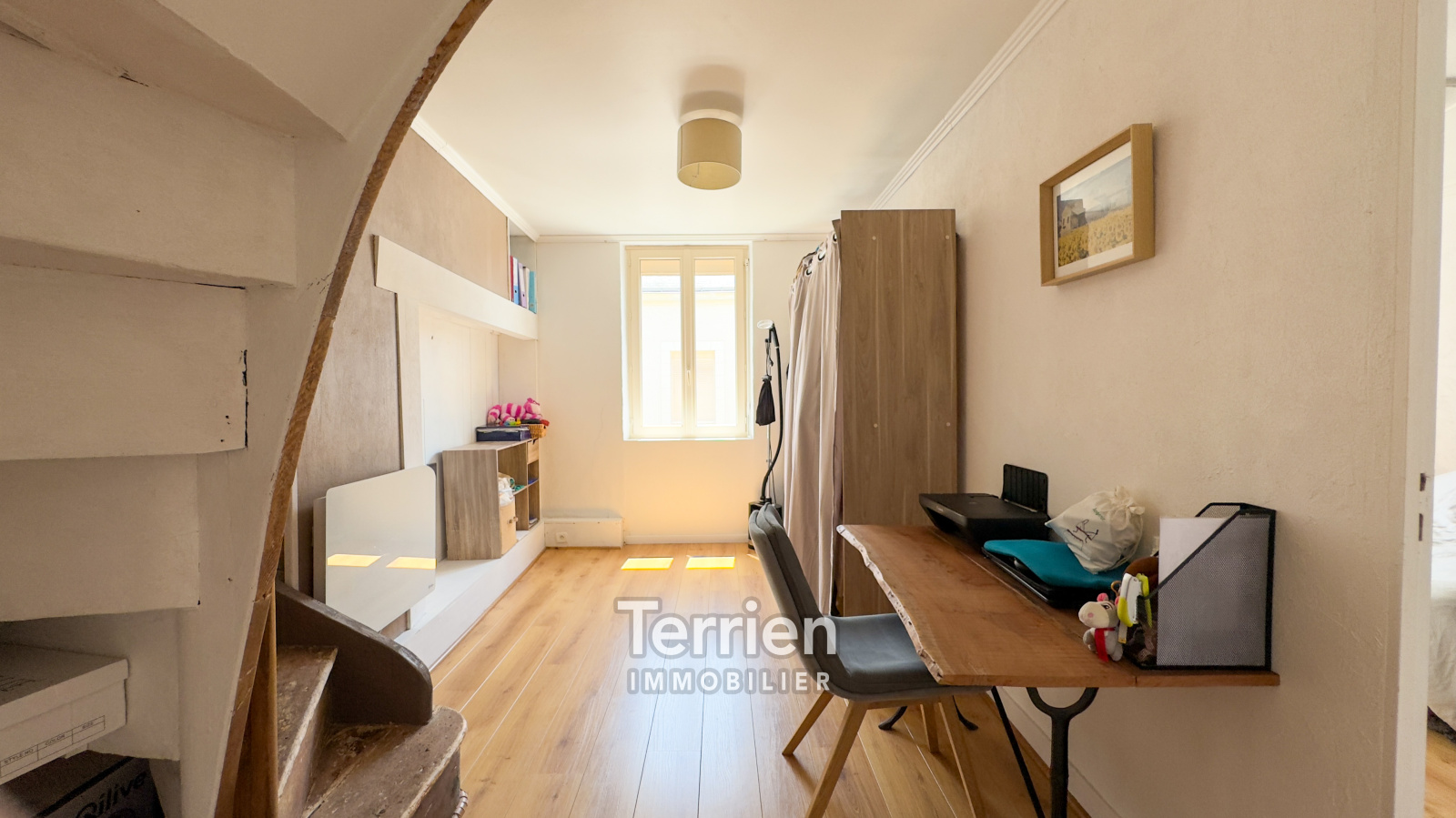 VENDU avec TERRIEN IMMOBILIER. Située au cœur de Montjean-sur-Loire, cette belle maison ancienne entièrement rénovée propose une surface habitable de 103 m². En entrant, vous serez accueilli par un spacieux salon-séjour, doté d'un poêle à bois et un élégant sol en marbre. La cuisine, moderne et fonctionnelle, est équipée d'un îlot central et s'ouvre sur une petite cour intime, idéale pour des repas en toute sérénité. Vous bénéficierez également de deux petites dépendances pour le rangement, d'un accès à la rue, d'un WC séparé sous l'escalier et d'un espace de rangement qui compléte ce niveau. À l'étage, un palier, pouvant faire office de troisième chambre ou bureau, côtoie une belle chambre avec parquet et une salle de bains généreuse, dotée d'une baignoire balnéo. Au dernier étage, une grande chambre avec poutres apparentes ajoutera du caractère à votre quotidien. Parfaitement située à proximité immédiate de tous les commerces, cette maison pleine de charme se distingue par ses matériaux de qualité tels que le marbre et les pierres de tuffeau. DPE E réalisé le 11/03/2025 - Honoraires à la charge de l'acquéreur - TERRIEN IMMOBILIER.