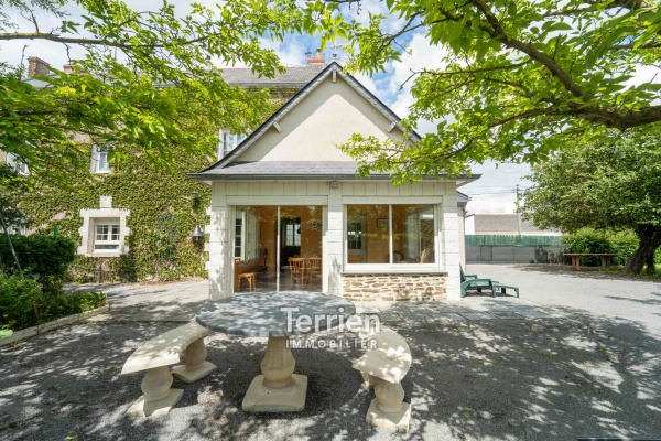 Cette maison d’architecte construite en 1987 se situe en campagne, à environ 4 km du cœur de La Pommeraye et à 5km du bourg de Montjean-sur-Loire. Avec ses 180m2 au sol (soit 150m2 habitable) répartis sur trois niveaux, elle offre un cadre de vie idéal. Dès l'entrée au rez-de-chaussée, vous serez charmé par la belle hauteur sous plafond. À gauche, vous découvrirez un spacieux salon doté d'une cheminée à foyer ouvert, des poutres en chêne et d'une vue imprenable sur Montjean et la Loire. Adjacent à cet espace, une cuisine ouverte, bien agencée avec de nombreux rangements et un îlot, cette cuisine s'ouvre sur une véranda lumineuse orientée à l'est, d'une superficie de 30 m2, parfaite pour les repas en famille. Toujours au rez-de-chaussée, une pièce modulable peut servir de chambre, accompagnée d'une salle d'eau moderne et d'un WC. De plus, un espace jacuzzi prolonge agréablement la véranda. À l'étage, un escalier en bois massif mène à un palier qui donne accès à quatre chambres. Une salle de bains avec double vasque et un WC complètent cet étage. Le sous-sol abrite un bureau aménagé avec accès extérieur, un garage ainsi qu'une pièce de rangement. À l'extérieur la terrasse en bois de 50m2 sur piloti ramène un charme fou à ce bien et vous offrira une une vue panoramique sur la nature environnante. Vous serez aussi charmé par le parc végétalisé de 1300 m2. Honoraires à charge acquéreur. TERRIEN IMMOBILIER