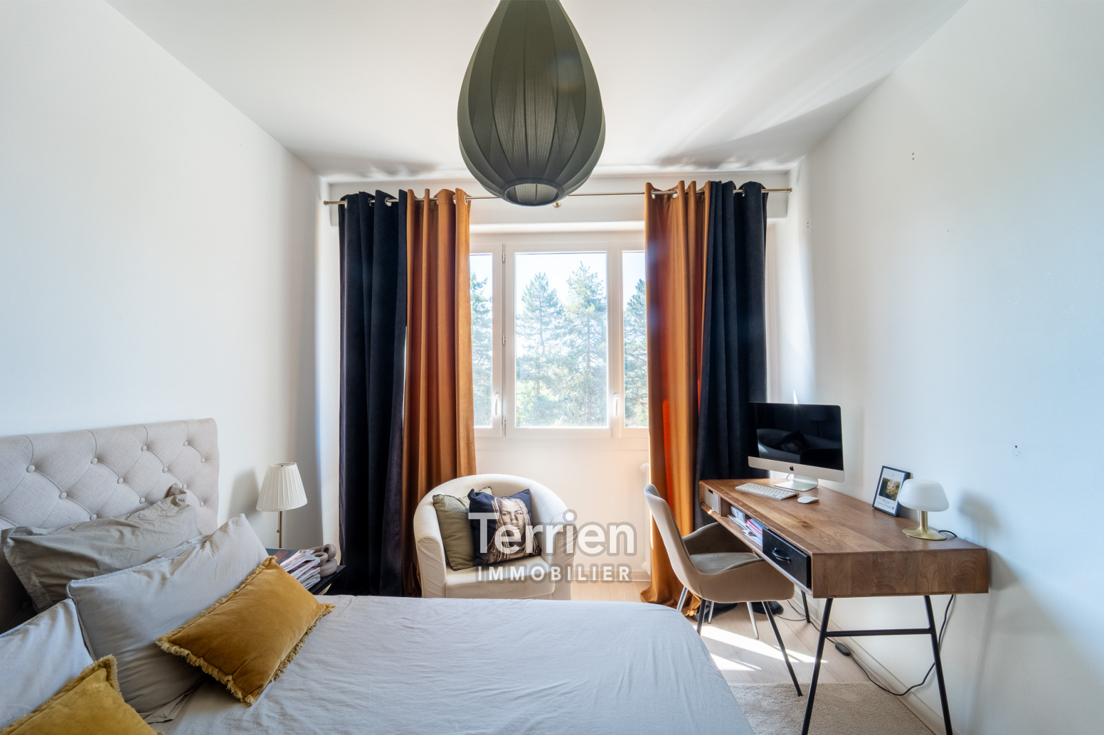 EN VENTE Chez TERRIEN IMMOBILIER. Situé dans un secteur prisé d'Avrillé, à deux pas des services (boutiques, bureau de tabac, centrecommercial). Nous vous présentons un superbe appartement au premier étage d'une copropriété bienentretenue, bénéficiant de la présence d'un gardien. L'entrée s'ouvre sur une vaste pièce de vie d'environ42m2, agrémentée d'un balcon filant offrant une vue remarquable sur le parc. Ce séjour est agrémentéd'un parquet en bois massif et de belles moulures, créant une ambiance chaleureuse et accueillante. Enface, vous découvrirez une cuisine entièrement équipée, dotée de meubles et d'appareils électroménagersde haute qualité, ainsi qu'un couloir avec de nombreux espaces de rangement. Pour la partie nuit,l'appartement propose trois chambres de 12m2 chacune, une salle d'eau et des toilettes indépendants. Deplus, vous bénéficierez d'une cave ventilée et d'un garage box avec prise électrique. Honoraires à charge acquéreur. TERRIEN IMMOBILIER