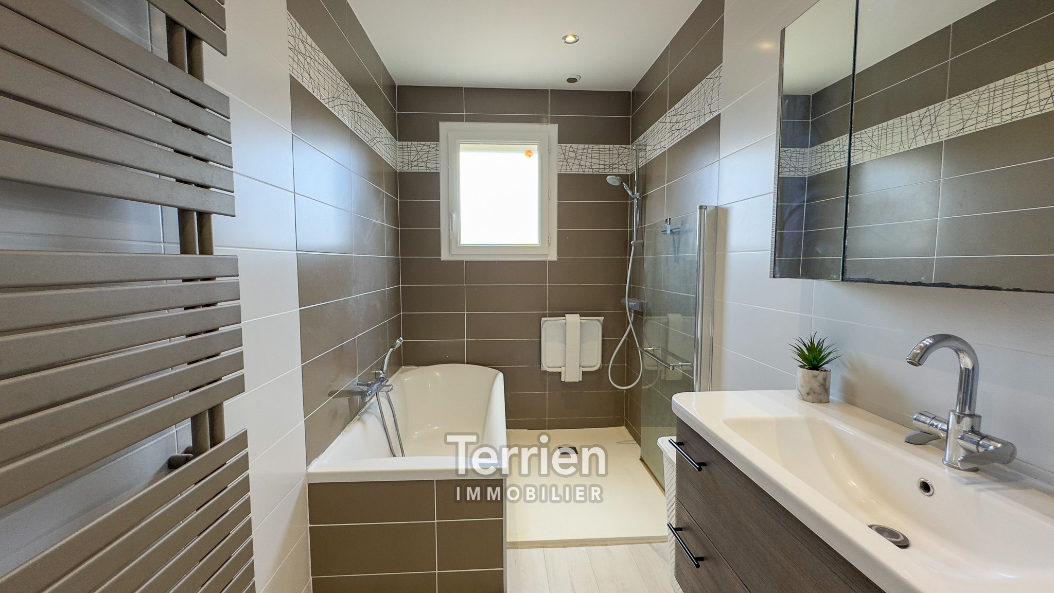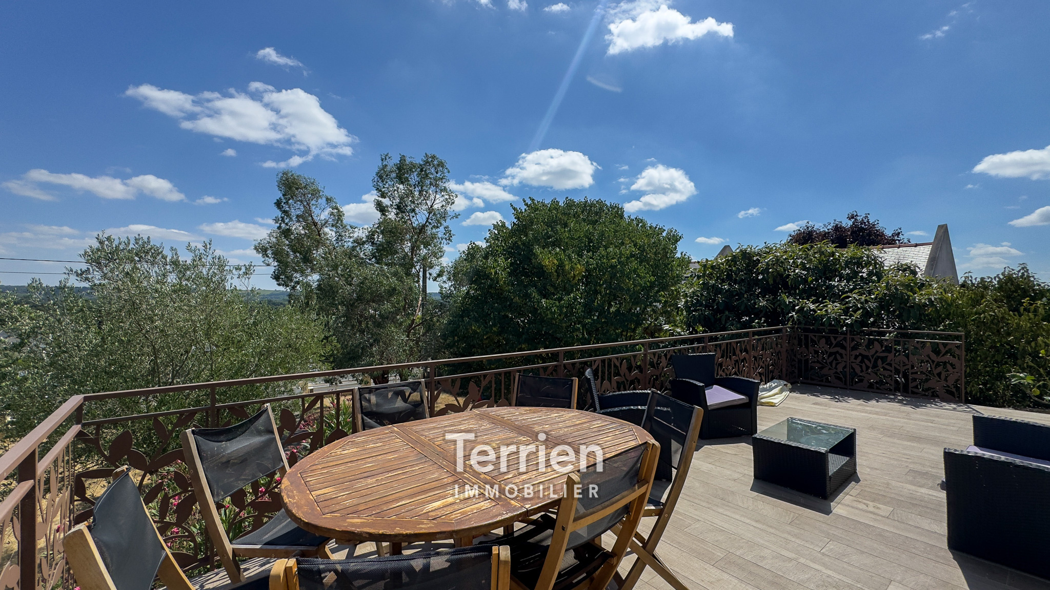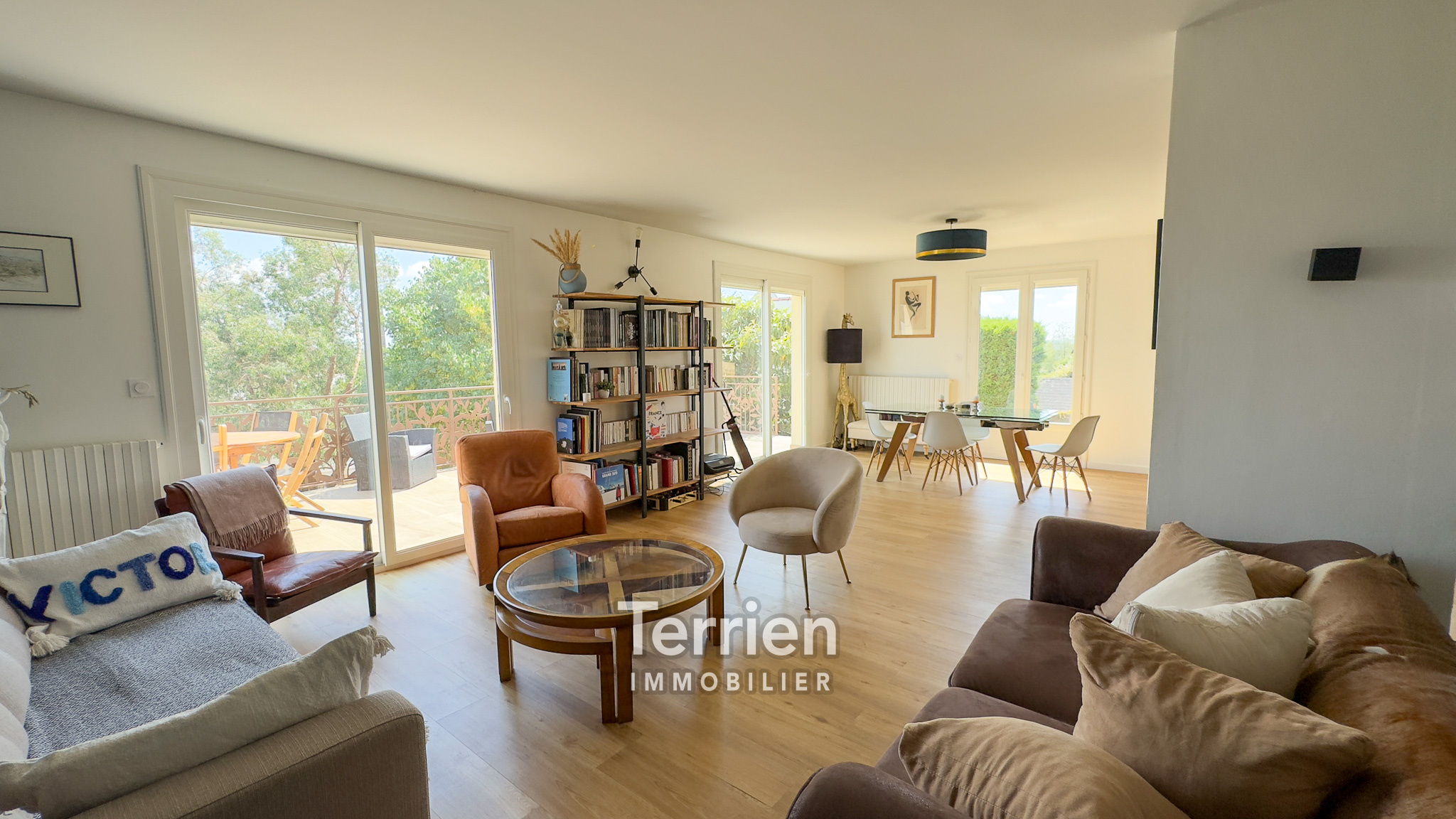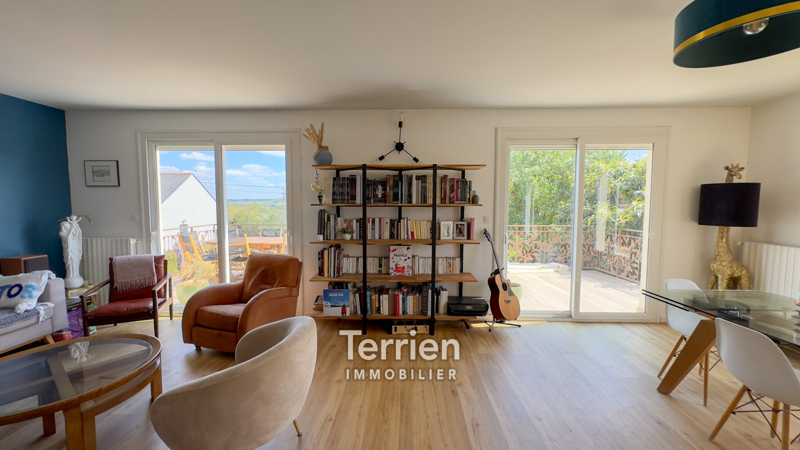 SOUS-COMPROMIS Chez TERRIEN IMMOBILIER. Une maison de 1973 dans un quartier très agréable de la Possonnière à 500m de la Gare (Direction Angers et Nantes) et des commodités (médecins, boulangerie, écoles). Une maison sur 2 niveaux située sur une parcelle de 1165m2 avec une vue surplombant et dégagée bénéficiant d'un regard sur la Loire. Ce bien dispose d'un RDC comprenant un double garage, une cave, une pièce chaufferie et une pièce annexe servant de rangements et d'un vide sanitaire sur une partie du bien. A l'étage, disposant d'une très belle vue, l'entrée est entièrement ouverte sur la pièce de vie de 55m2 au total (salon, salle à manger et cuisine). Cette pièce dispose de nombreuses ouvertures (baies vitrées en double vitrage) et d'une terrasse de 25m2 vue Loire. La maison dispose de 3 chambres, une salle d'eau récente et d'un wc indépendant. Le chauffage est au fioul. Côté extérieur, on retrouve une entrée bien arborée, deux terrasses, un coin pour les enfants et un potager avec un poullailer dans les hauteurs de la parcelle.