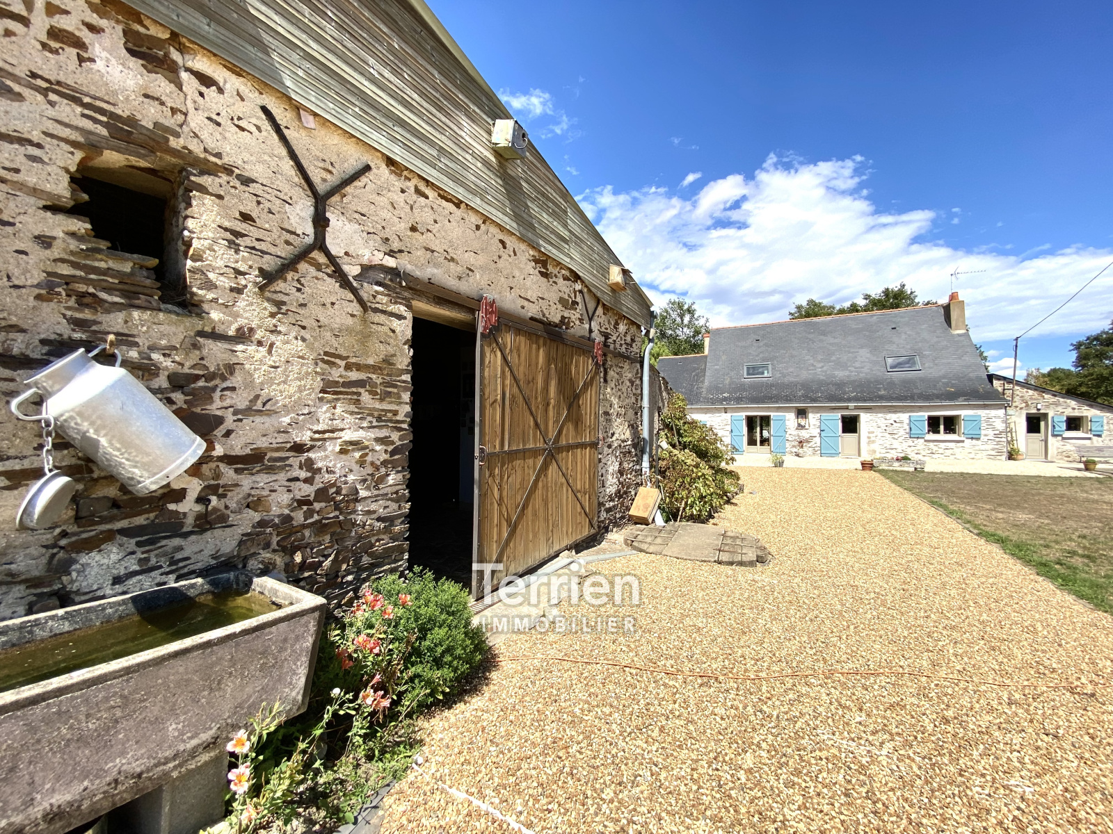 Dans un cadre agréable et totalement au calme, à proximité de l'axe Angers/Nantes. Un ancien corps de ferme datant du 17/18ème, rénové entièrement en maison de caractère sur une parcelle de terrain de 2,8 hectares. La maison possède une grande terrasse, un jardin avec étang, un potager alimenter par un puits, des terres agricoles idéales pour accueillir des animaux ou crée un espace de permaculture. La maison a su garder son caractère d’origine, tomettes, cheminée, poutres apparentes avec hauteur sous plafond de 2,8m. La surface est de 176m2 habitable sur 2 niveaux et d'un potentiel de 200m2 au sol, grâce à cette grande dépendance entièrement aménageable en habitation. Au rez-de-chaussée, on découvre une grande pièce de vie chaleureuse avec tomettes d’origine, poutres apparentes avec belle HSP, ainsi qu'une large cheminée à foyer ouvert conçue en briques et pierres de tuffeau. Dans le prolongement, une cuisine aménagée dinatoire équipée d'un poêle à bois et d'une ouverture vers l'extérieur, une buanderie/chaufferie, une chambre parentale traversante de 32m2 avec dressing et ouverture sur le jardin. Au 1 er étage, un palier avec de nombreux rangements donne accès à une première chambre spacieuse avec double exposition, une seconde chambre pour enfant, une salle d’eau avec wc intégrés. Cet étage dispose d'un accès indépendant à l’extérieur de la maison. En conclusion, cette maison sera ravir les amoureux des jolies pierres et de la nature, avec des possibilités de gîte ou d'agrandissement grâce au parfait état et au potentiel des dépendances - Diagnostics effectués le 22/08/2022 - Honoraires à charge vendeur - TERRIEN IMMOBILIER