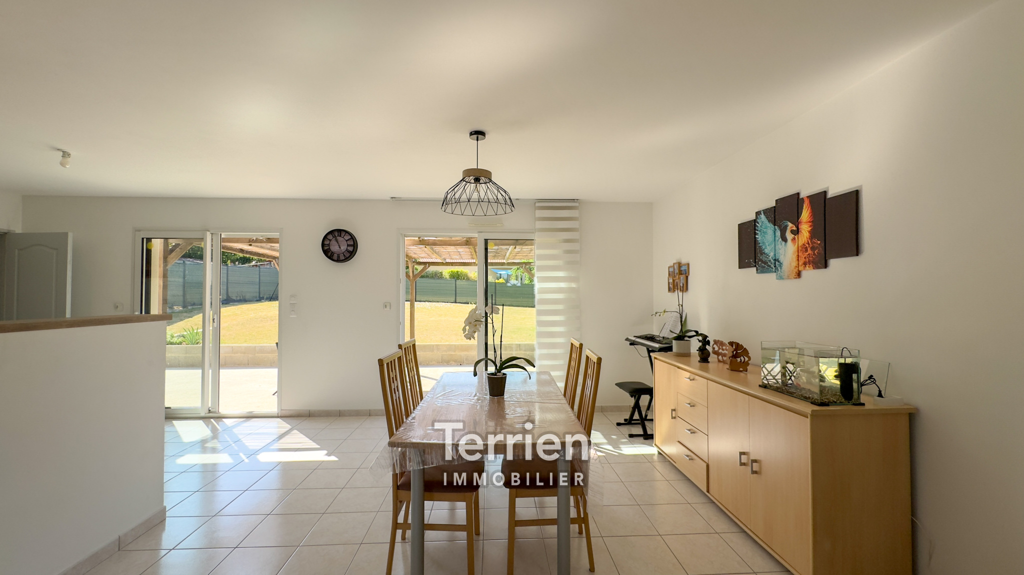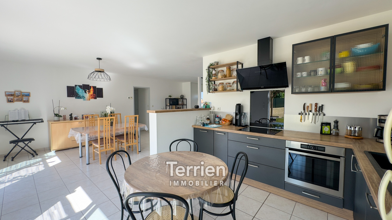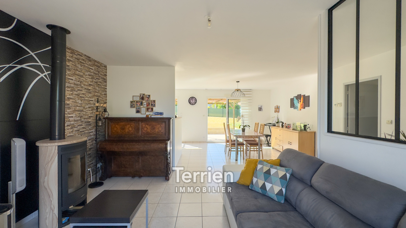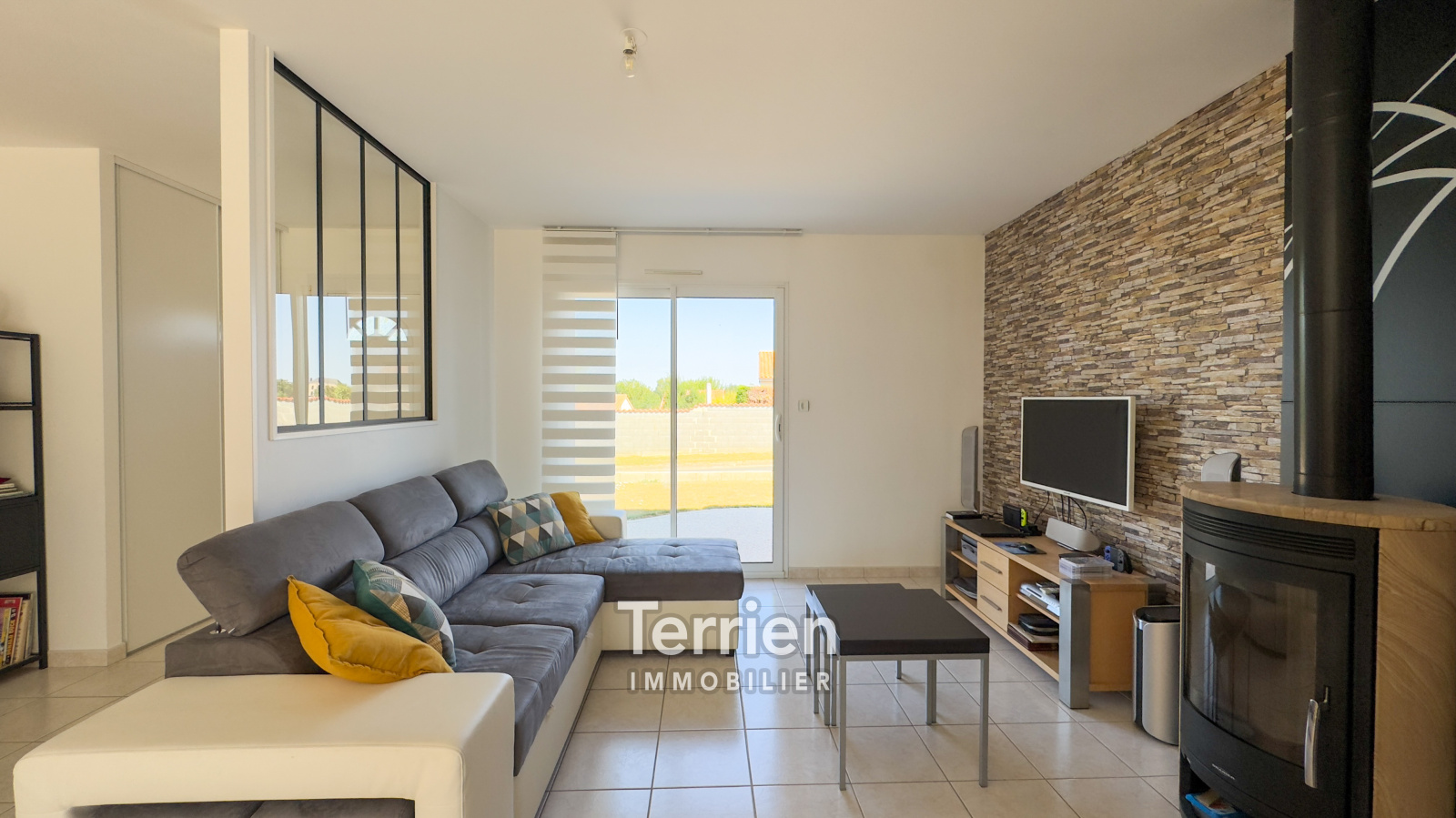 VENDU avec TERRIEN IMMOBILIER. Située dans la tranquille commune de Saint-Quentin-en-Mauges, à proximité de Beaupréau et de La Pommeraye, découvrez cette charmante maison de plain-pied d'une superficie de 102 m² habitable sur une parcelle de terrain de 870 m². À l'entrée, vous serez accueilli par un hall avec un placard, suivi d'une magnifique verrière qui mène à un salon doté d'un poêle à bois. Le séjour, baigné de lumière, offre une vue sur le jardin grâce à ses deux grandes baies vitrées. La cuisine, moderne et entièrement équipée, a été rénovée récemment. Vous trouverez également une buanderie avec un point d'eau et un grand placard de rangement, ainsi qu'un garage spacieux de 25 m² pour stationner votre véhicule. La partie nuit se compose de quatre chambres avec placards intégrés, d'une salle d'eau récemment rénovée et d'un WC séparé. À l'extérieur, une grande terrasse bitumée de 40 m² et un jardin clos, sans vis-à-vis, vous attendent. De plus, deux places de stationnement supplémentaires sont à votre disposition. Cette maison, en excellent état, est économe en énergie. DPE C rélalisé le 08/07/2025 - Honoraires à la charge de l'acquéreur - TERRIEN IMMOBILIER.