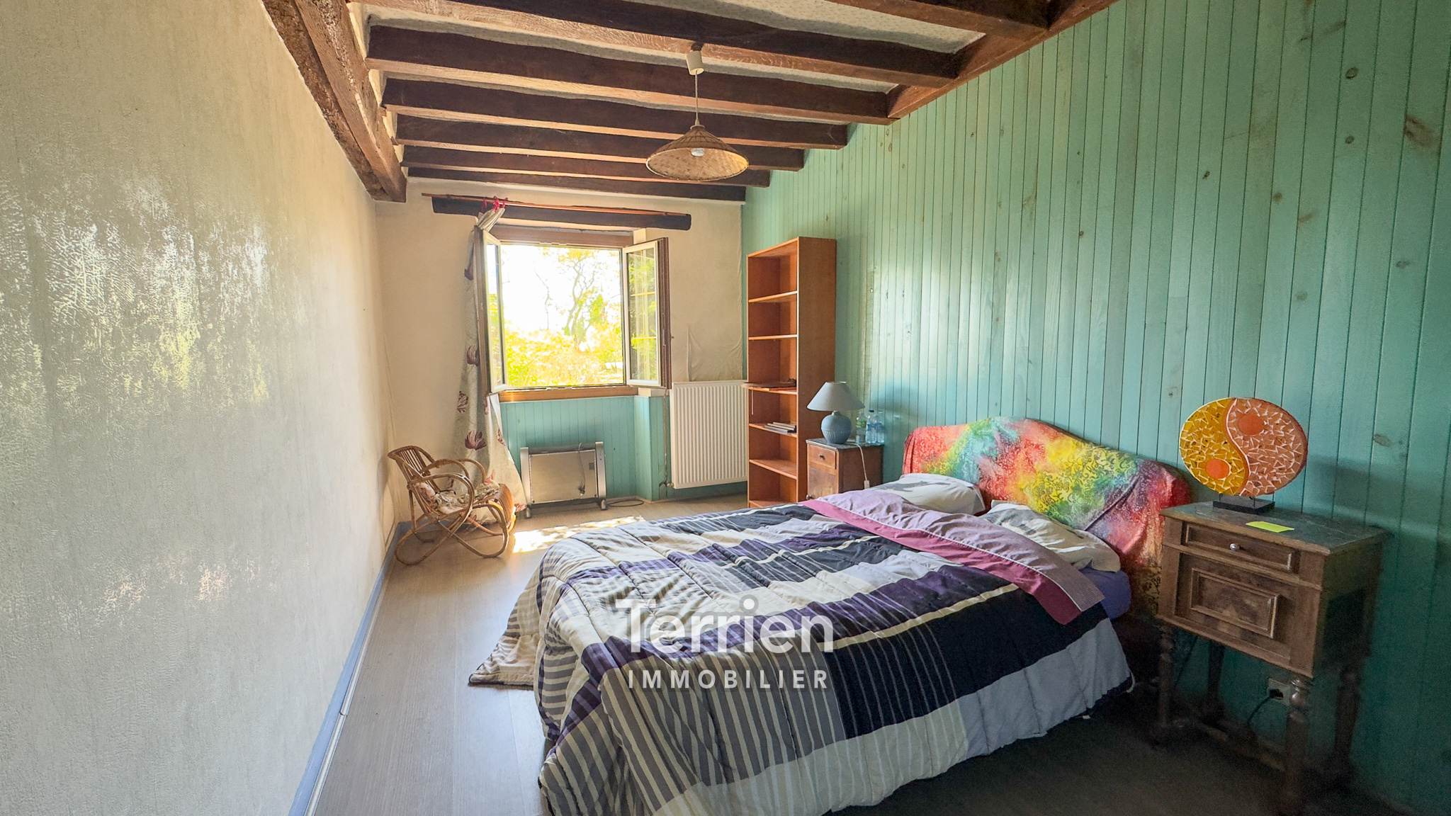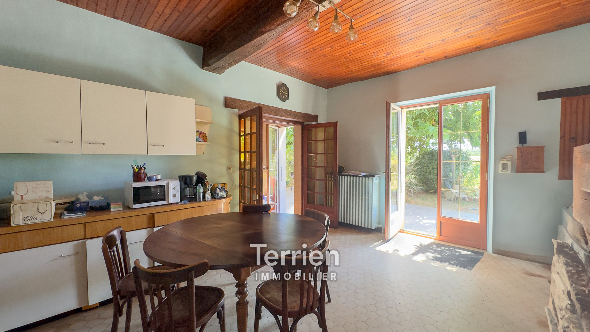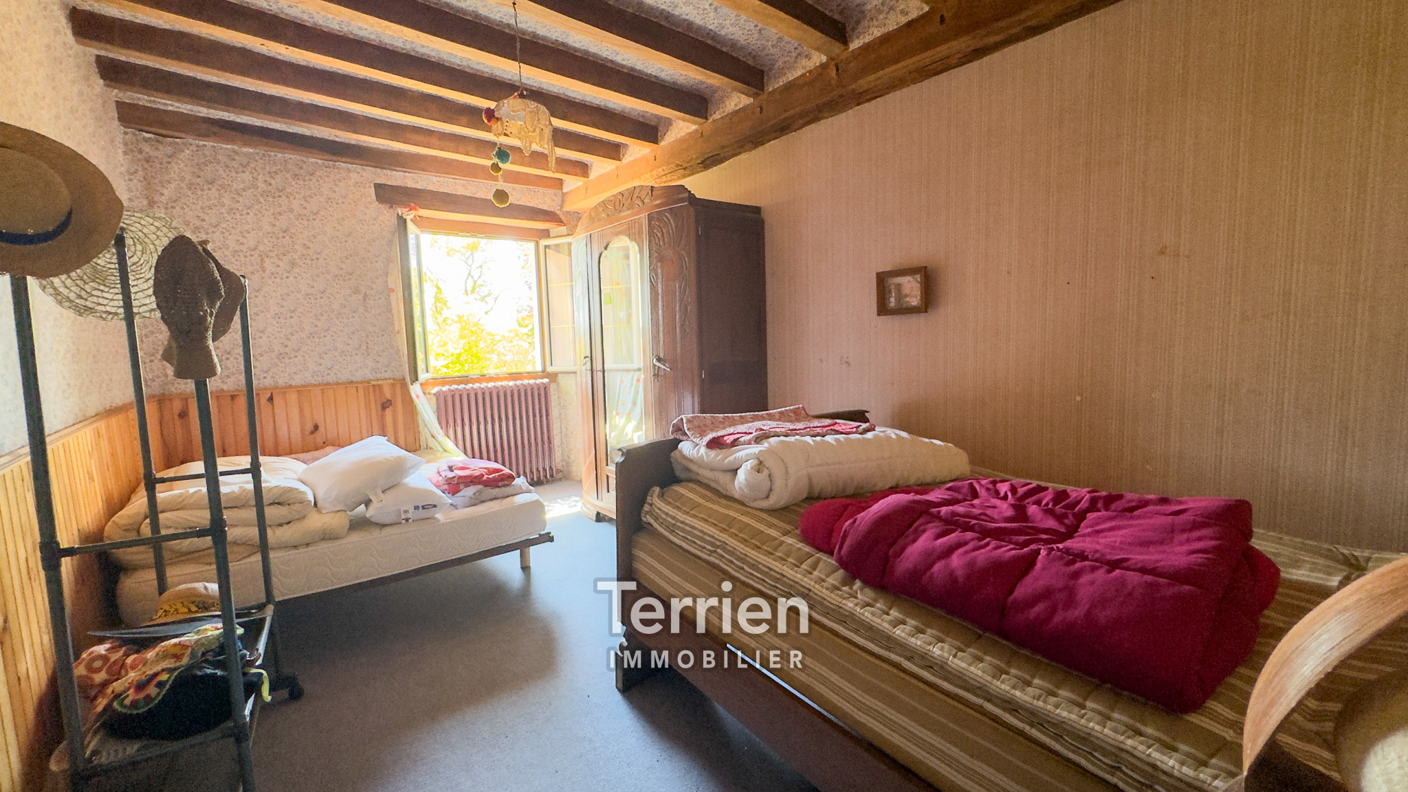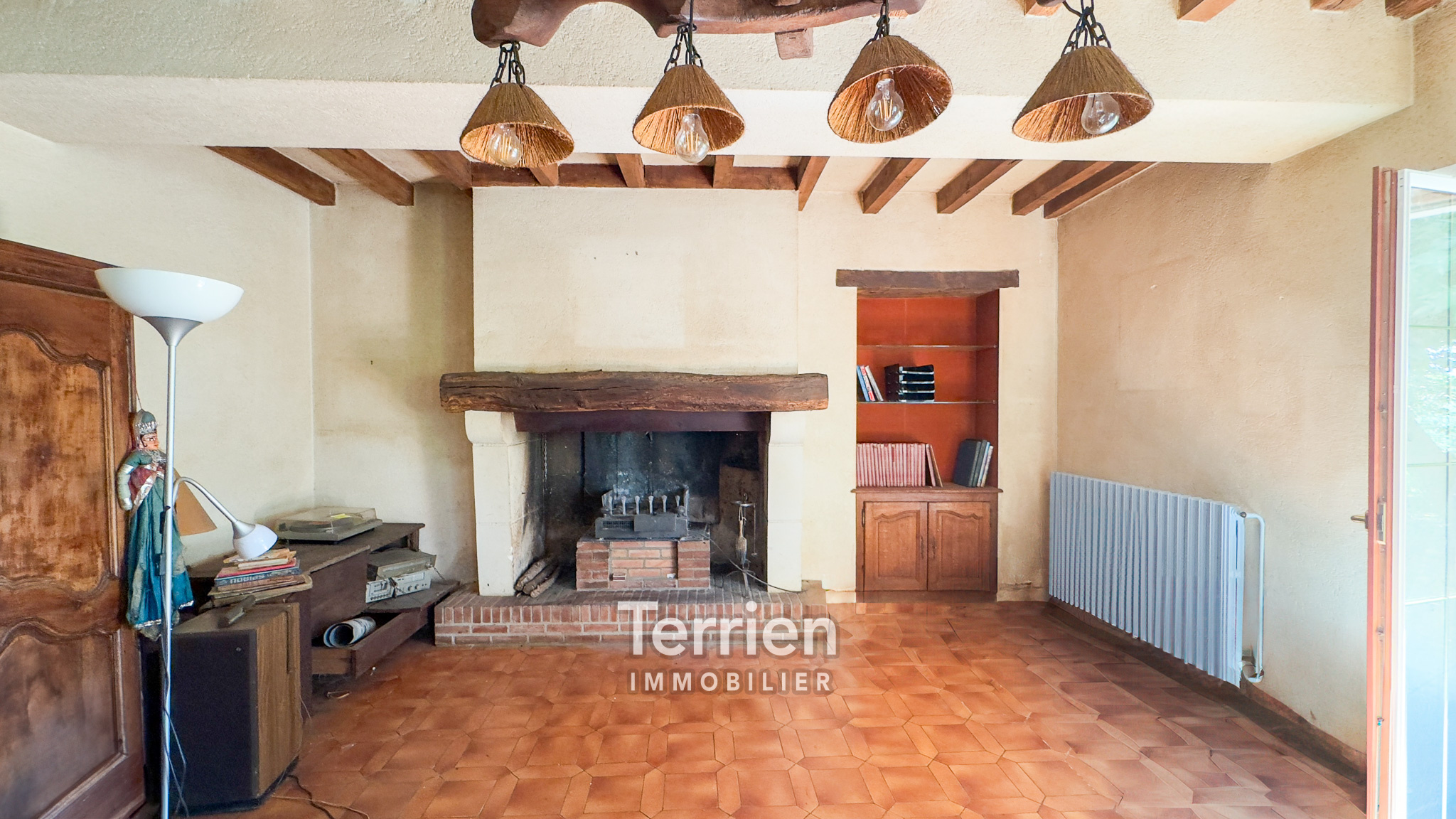 SOUS-COMPROMIS Chez TERRIEN IMMOBILIER - À seulement 4 km du centre de Saint-Aubin-de-Luigné et de Saint-Lambert-du-Lattay, cette maison ancienne, soigneusement entretenue, dégage un charme indéniable et est entourée des magnifiques vignes des coteaux du Layon. Érigée sur un terrain de 9000m2 environ, elle bénéficie d’un aménagement extérieur agréable, comprenant une terrasse orientée Sud-Ouest, un puits utile tant pour le jardin que pour la maison, ainsi qu’un vaste espace de pâture agrémenté d'une mare. L'entrée mène directement à une cuisine ouverte sur un séjour, chacun étant équipé d'une grande cheminée qui apporte chaleur à ces espaces conviviaux. À l'arrière de la cuisine, un couloir conduit à quatre spacieuses chambres, dont deux possèdent un point d’eau. En complément, vous trouverez un débarras, une buanderie avec une chaudière à gaz récente, une salle de douche rénovée et des toilettes séparées. Les pièces de vie, baignées de lumière grâce à leurs nombreuses ouvertures sur le jardin et leur exposition Sud-Ouest, profitent également de menuiseries récentes (alu et bois à l'avant, PVC à l'arrière). L’accès à l’étage s’effectue par un escalier extérieur en pierre et ardoise, menant à un plateau en tomettes à aménager (dalle béton). De belles poutres apparentes ajoutent du caractère à cet espace. Enfin, des dépendances aménageables d’environ 100 m² viennent parfaire ce bien, avec des toitures en bon état et des poutres apparentes.Honoraires à la charge de l'acquéreur - TERRIEN IMMOBILIER