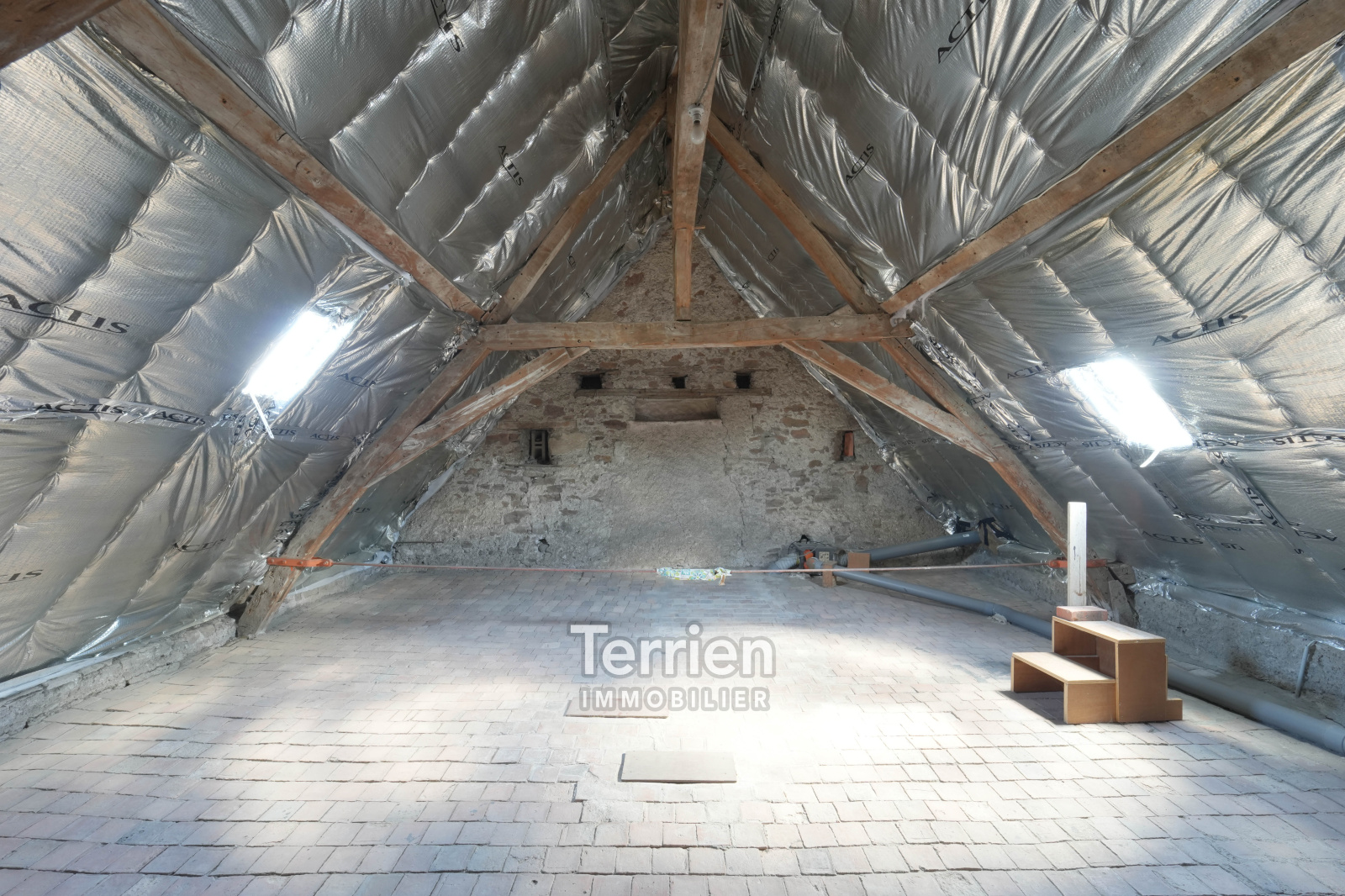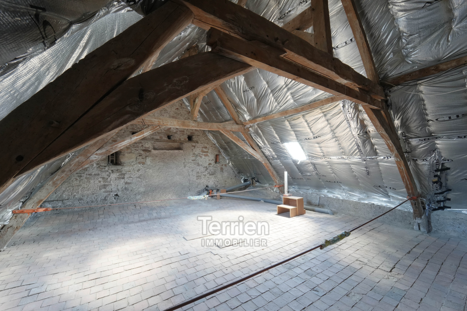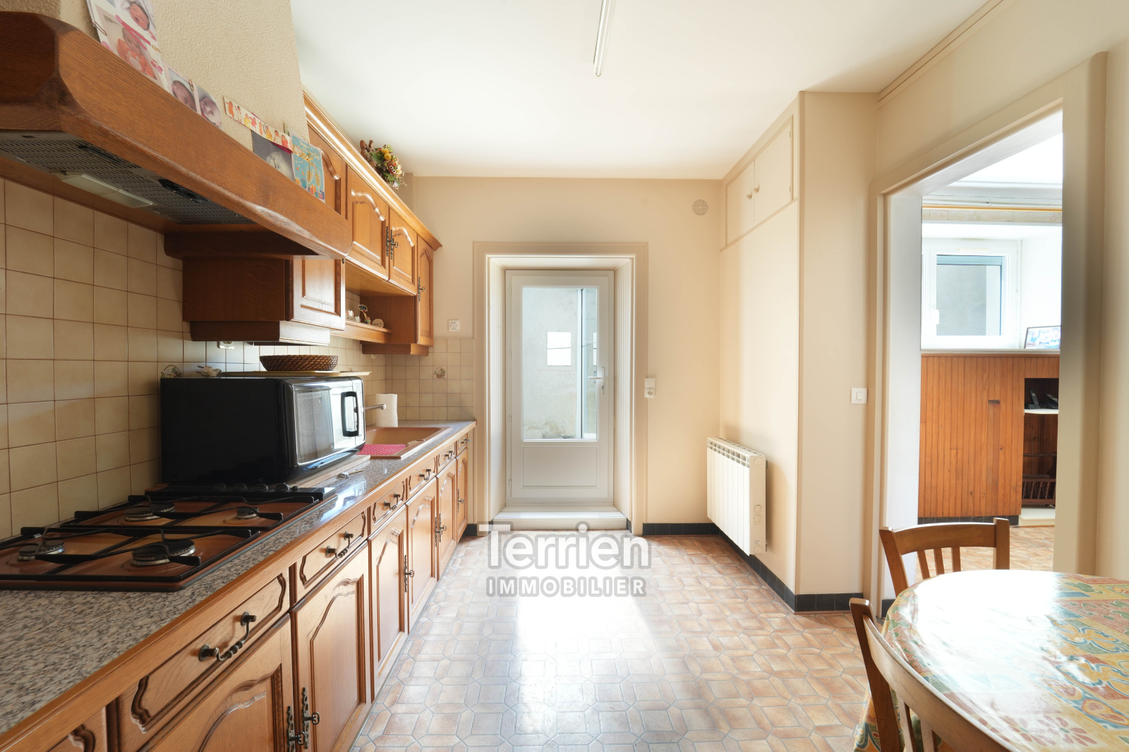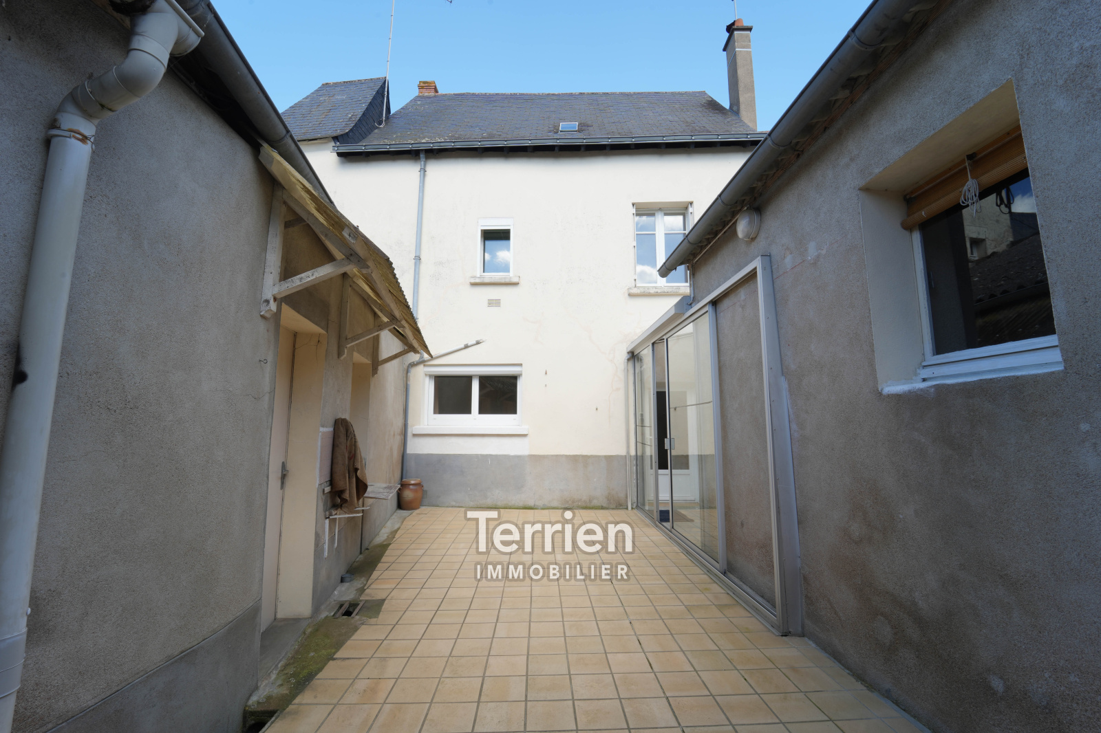 VENDU Chez TERRIEN IMMOBILIER. Une maison de bourg, d’une surface habitable de 89m², idéalement située dans le centre de Chalonnes-sur-Loire, à deux pas de la Loire ainsi que des commerces et commodités qu’offre la ville. La maison s’ouvre sur une entrée qui distribue d’un côté la salle à manger, ainsi que le coin cuisine équipée d’un four, plaques de cuisson gaz et hotte aspirante. Dans la continuité un petit salon dirige vers une chambre avec sa salle d’eau et WC, et une cheminée. Toujours au rez-de-chaussée, on retrouve un espace buanderie et un second WC. Situé dans une tourelle, l'escalier avec ses marches en ardoise mène au 1er étage, où un palier distribue 3 chambres et une salle d’eau avec douche et lavabo. Le bien propose au troisième niveau un grenier d’environ 23m² avec tomettes et charpentes apparentes qui ne demande qu’à être exploité en chambre supplémentaires ou espace détente. Celui-ci a été isolé récemment. A l’extérieur, on retrouve une cour exposée plein sud avec un puit, un patio avec baie vitrée, une grande dépendance avec une cave, et un puit. Le bien dispose également d’un garage non-attenant d’environ 18m² pouvant accueillir 2 véhicules, ainsi que dans son prolongement un petit jardin permettant d’y faire un potager. Beau potentiel et bel emplacement pour cette maison à rafraichir selon votre convenance. DPE E. Honoraires à charge vendeur. TERRIEN IMMOBILIER.
