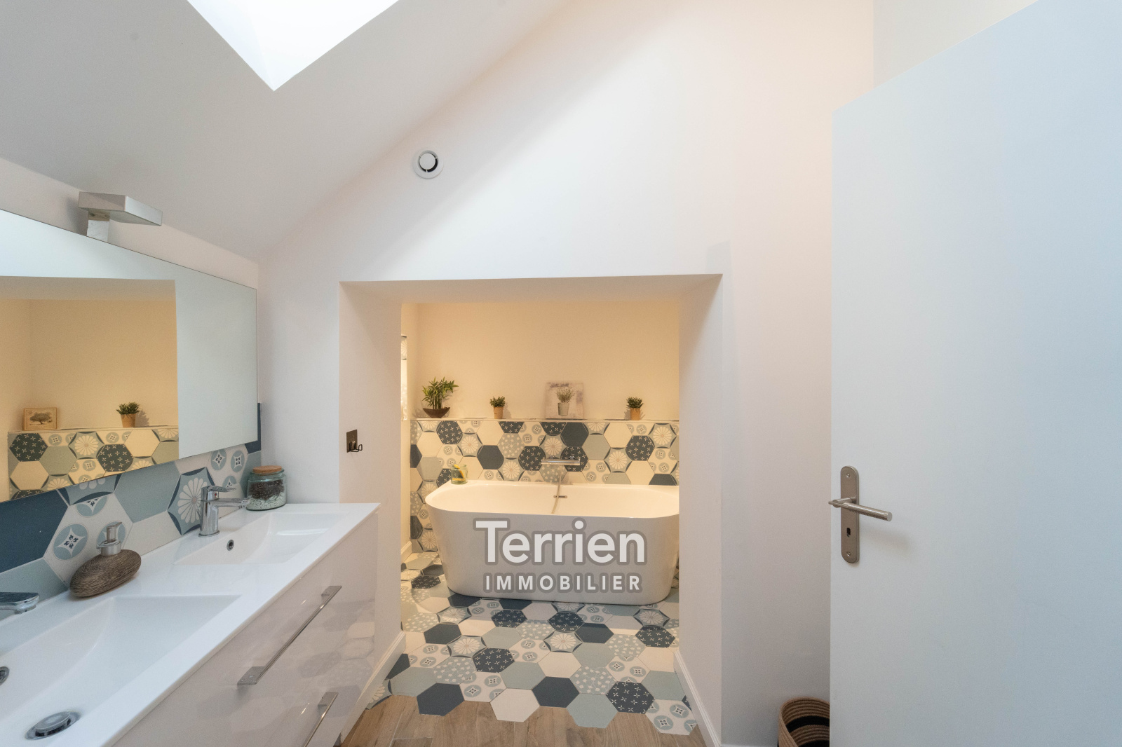 Située au cœur de Chalonnes-sur-Loire, à deux pas de la Loire et des commerces, cette belle maison ancienne en pierres de tuffeau s'étend sur trois niveaux, offrant une superficie de 169 m² au sol et 156 m² Carrez. Au rez-de-chaussée, vous trouverez un séjour lumineux qui s'ouvre sur la rue et la terrasse, ainsi qu'un espace salon qui peut facilement être transformé en bureau ou en bibliothèque. Toujours à ce niveau, un dégagement, des toilettes, et une cuisine moderne parfaitement agencée vous invitent à profiter de repas en extérieur. À l'extérieur, un local technique et une cave complètent cet ensemble. Au premier étage, un palier avec rangements dessert deux chambres, dont une suite parentale avec dressing et salle d'eau, ainsi qu'une seconde chambre spacieuse disposant de sa propre salle d’eau. Au dernier étage, deux charmantes chambres sont accompagnées d'une salle de bains contemporaine équipée d'une baignoire et d'un puits de lumière, tout en conservant un bel esprit authentique. Ce bien rare sur le marché est idéalement situé, dispose d'un extérieur agréable et affiche un DPE de classe B grâce aux travaux d'isolation réalisés et à la pompe à chaleur. Les honoraires sont à la charge des acquéreurs. TERRIEN IMMOBILIER