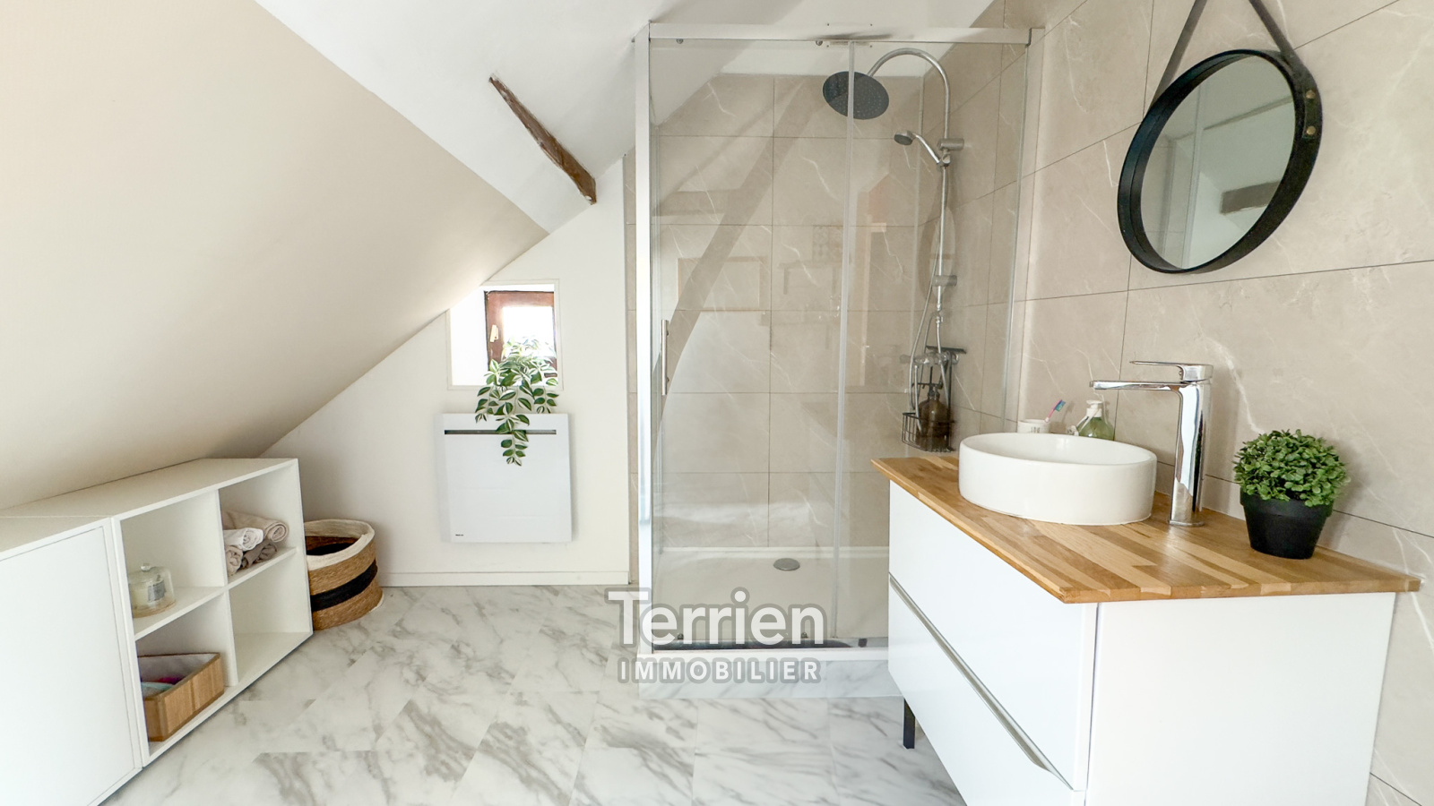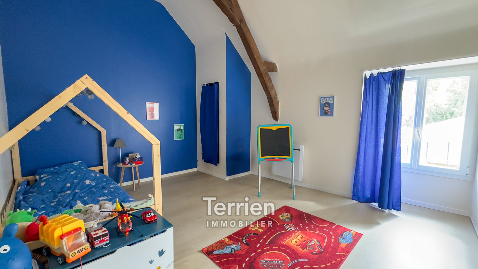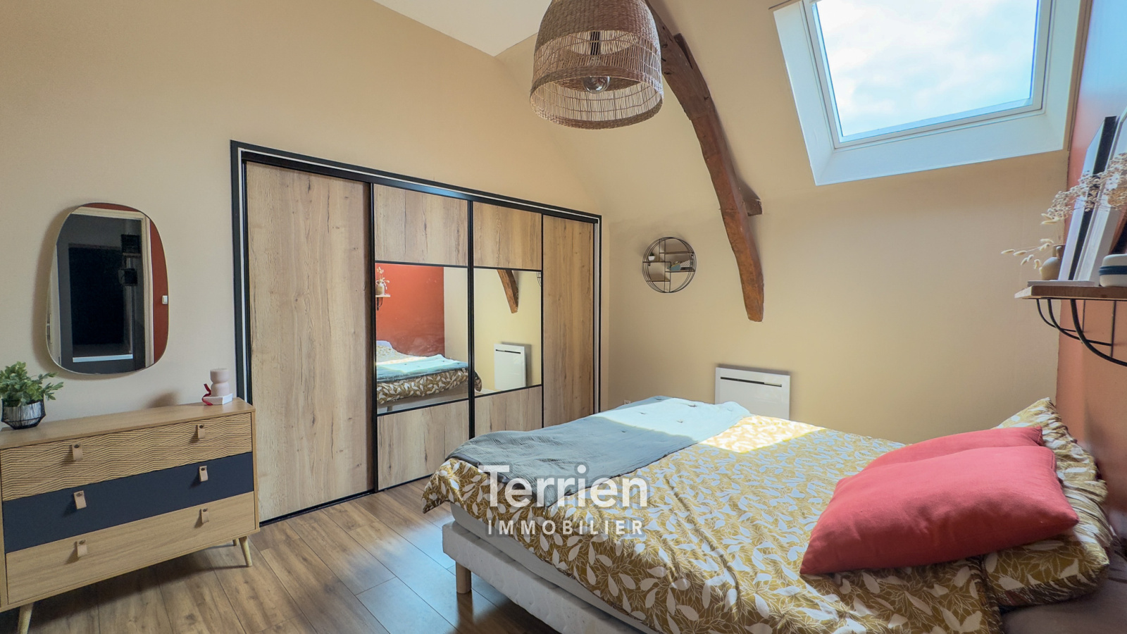 EN EXCLUSIVITÉ chez TERRIEN IMMOBILIER. Venez découvrir cette ravissante demeure ancienne nichée sur l'île de Chalonnes-sur-Loire, à seulement 2,5 km du cœur du bourg de Chalonnes-sur-Loire. Cette maison pleine de charme repose sur un grand terrain de 1350 m², avec une belle terrasse à l'avant et un espace détente à l'arrière. À l'intérieur, vous serez séduit par un vaste salon chaleureux muni d'un poêle à bois inséré dans une cheminée en tuffeau, donnant sur une cuisine moderne entièrement aménagée. Les amateurs d'authenticité apprécieront les poutres apparentes qui ornent le lieu. Le rez-de-chaussée comprend également une salle de bains, des toilettes, une buanderie, ainsi qu'une grande pièce avec mur en pierre qui peut servir de chambre. À l'étage, un palier mène à quatre chambres bénéficiant d'une belle hauteur sous plafond, dont une suite parentale avec salle d'eau privative récemment refaite. Vous y trouverez aussi un WC. Cette propriété est idéale pour les passionnés de la Loire, offrant un cadre parfait pour les balades à vélo, tout en étant proche des commerces et du centre-bourg. Les frais d'agence sont à la charge des acquéreurs. Terrien Immobilier.