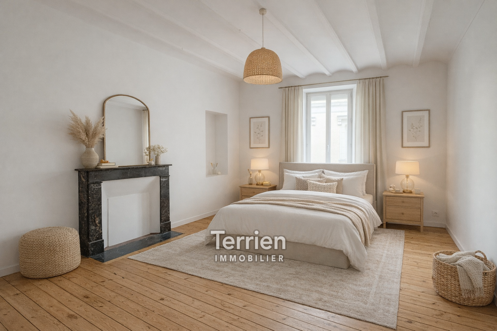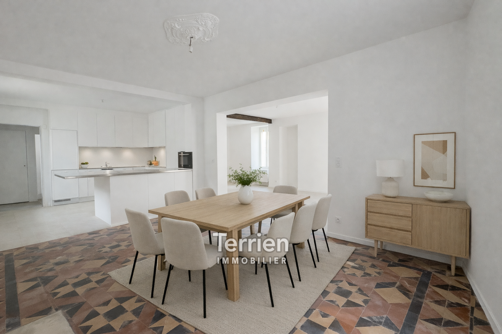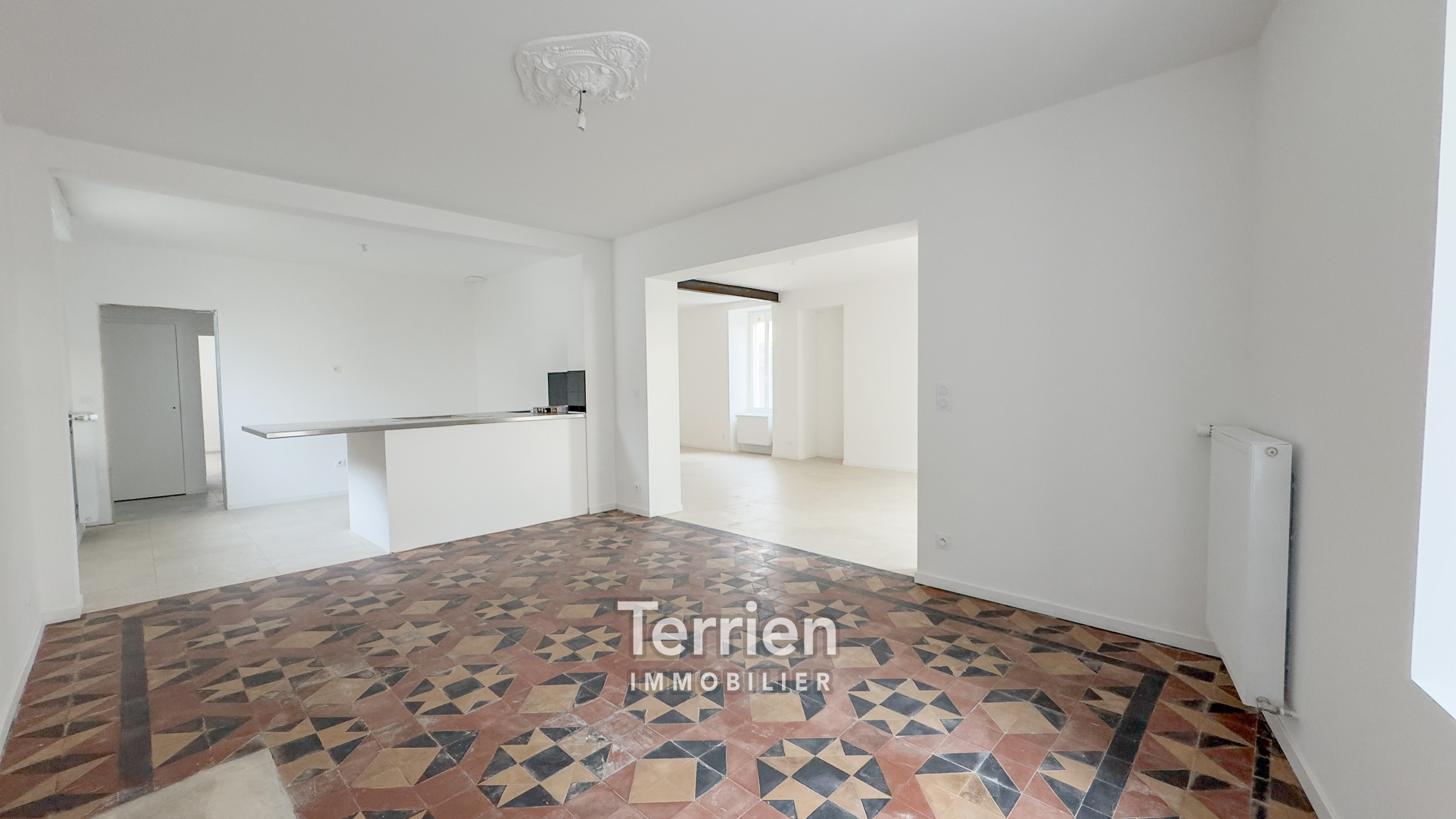 EN EXCLUSIVITE chez TERRIEN IMMOBILIER. Nichée dans un charmant village au cœur des vignes situé à 10 minutes de Chalonnes et à 20 km d’Angers, cette maison de bourg entièrement repensée est idéale pour accueillir une famille. Dès le rez-de-chaussée, vous serez séduit par une belle pièce de vie ouverte, comprenant un salon, une salle à manger ornée d’authentiques carreaux de ciment, ainsi qu’une cuisine équipée d’un plan de travail en inox. Dans la continuité, vous trouverez un espace chaufferie, un WC, une lingerie, ainsi qu’un bureau lumineux ouvert sur l’extérieur grâce à une verrière type atelier. À l’étage, le palier dessert un WC, une salle d’eau, deux grandes chambres avec cheminées anciennes, ainsi qu’une chambre d’enfant. Dans le prolongement, une suite parentale se dévoile, composée d’un dressing, d’une salle d’eau privative et d’une chambre. Une échelle escamotable permet d’accéder au grenier, offrant un potentiel d’aménagement supplémentaire d’environ 70 m². À l’extérieur, une vaste cour / terrasse de 80m² invite à profiter de repas ensoleillés. Vous bénéficierez également de deux espaces de stockage, d’une cave avec puits, ainsi que 2 places de stationnement privatives. Possibilité d'acquérir en sus 300 m² de terrain supplémentaire. La maison a fait l’objet d’une rénovation soignée, avec une optimisation des espaces, des huisseries en double vitrage avec volets motorisés, une isolation refaite, et un système de chauffage performant par pompe à chaleur. DPE B. Honoraires à charge acquéreurs. TERRIEN IMMOBILIER Les informations sur les risques auxquels ce bien est exposé sont disponibles sur le site www.georisques.gouv.fr. Pour plus d'informations ou pour organiser une visite, contactez Aymeric Viot : 06 03 77 04 02. Agent commercial - EI VIOT AYMERIC - immatriculé au R.S.A.C. d'Angers sous le numéro 977866425.