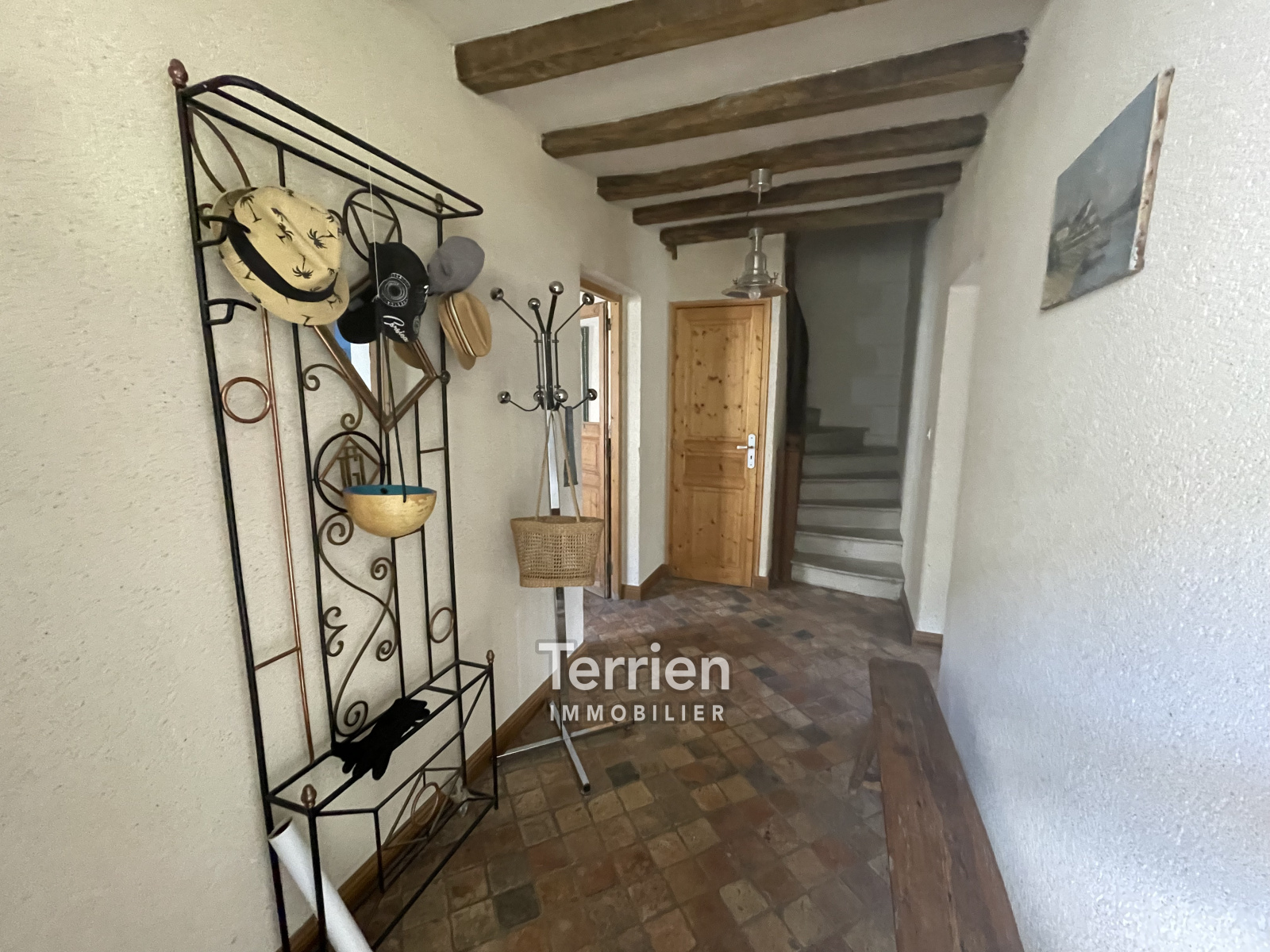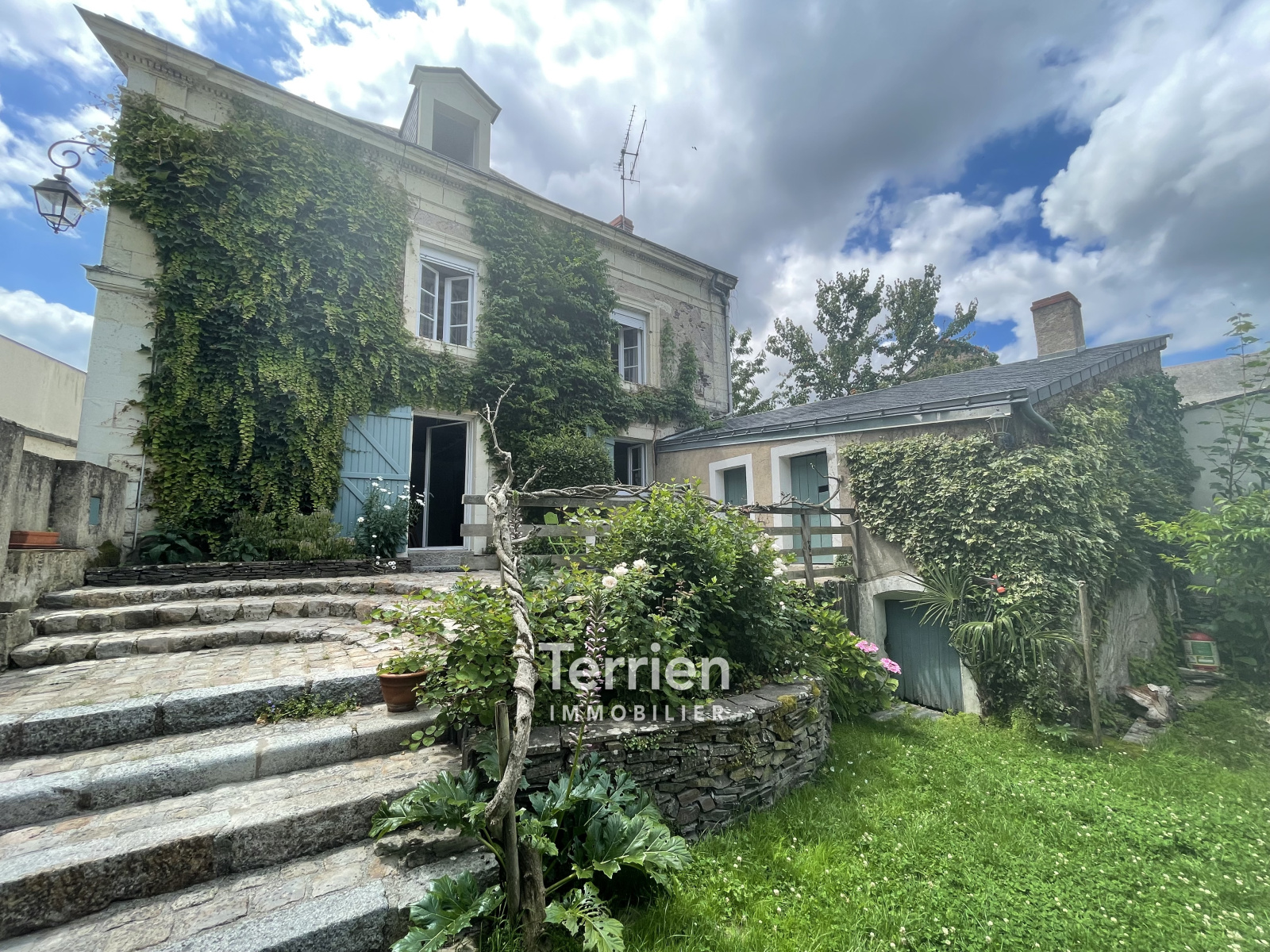 Cette maison ancienne située en plein coeur de Chalonnes restaurée goût, à su garder son charme d'origine et profite d'un jardin clos et d'une terrasse entièrement pavée. L'accès à la maison peut se faire via l'entrée située dans une ruelle calme ou directement par le jardin. Le rez de chaussée avec plancher chauffant et tomettes est composé, d'une cuisine / salle à manger de 35m2 avec cheminée, d'une arriere cuisine / lingerie donnant sur l'extérieur, d'un salon au calme avec poutres apparentes et d'un wc d'invités. Au premier étage : vous bénéficierez de trois belles chambres de 17m2 environ, dont deux avec vue Loire, d'une salle de bain avec douche et baignoire et d'un wc. Au dernier étage, une grande pièce mansardée de 38m2 au sol avec vue Loire baignée de lumière naturelle permettra d'aménager une suite parentale, avec bureau ou atelier. En complément, cet étage dispose d'une salle d'eau parfaitement aménagée, d'un wc et d'une seconde pièce mansardée qui reste à aménager. La maison dispose d'une dépendance avec chaudière au fioul et d'une cave. INFOS : Taxe Foncière 1072 euros. Surface de 209m2 au sol, et 16m2 au sol de dépendance. Honoraires de Transactions à charge vendeur. TERRIEN IMMOBILIER