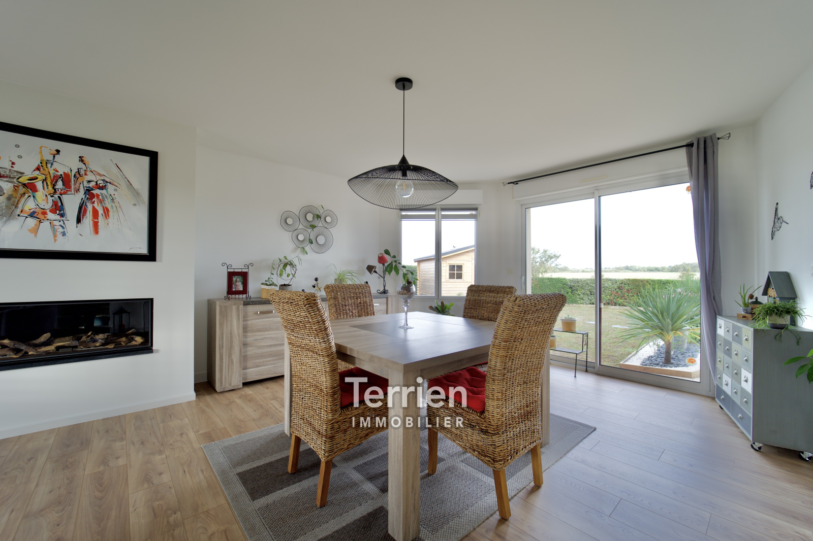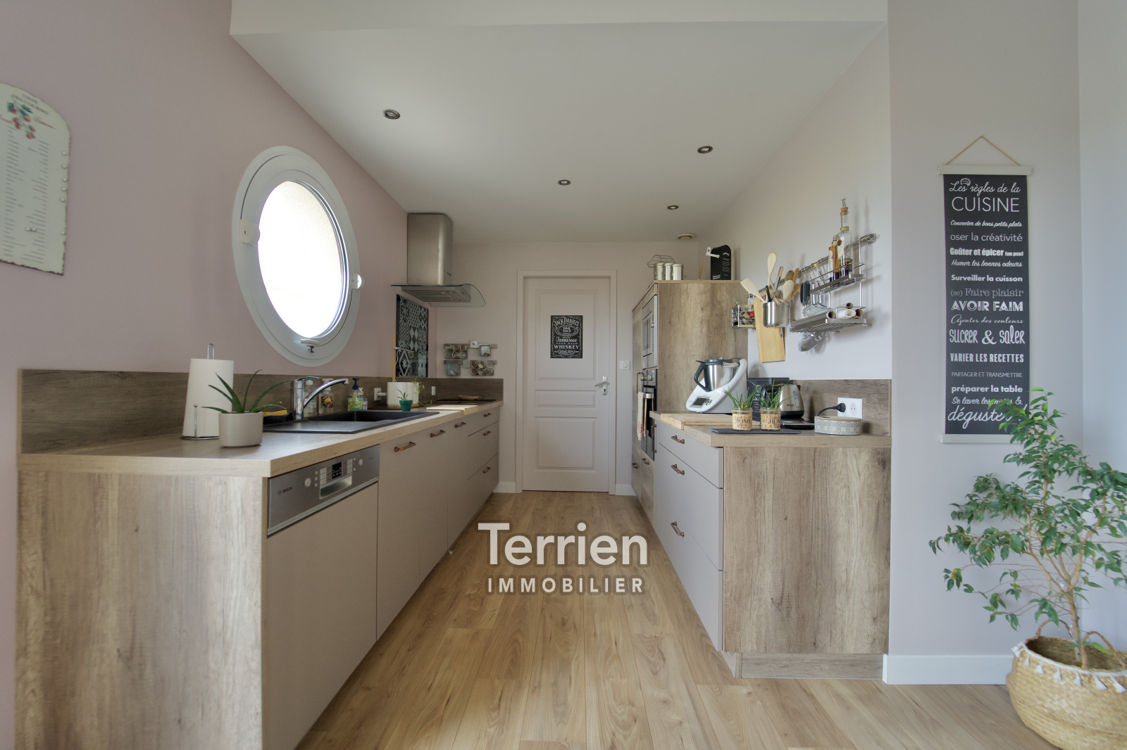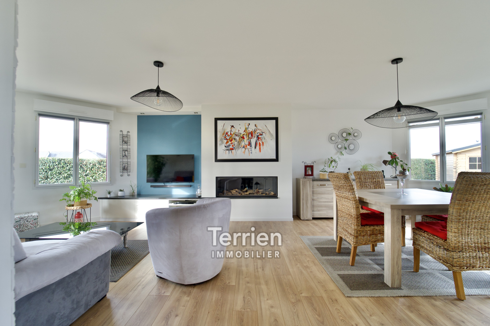 Une maison d'habitation calme et lumineuse avec vue sur la nature d'une surface habitable de 144m2 habitables sur une parcelle de terrain clos de 580m2. La maison est composée d'une entrée spacieuse avec placards qui dessert un chaleureux salon/séjour avec cheminée (gaz) et sol en parquet. Dans la continuité, une cuisine ouverte toute équipée disposant également d'une buanderie. Une suite parentale avec placard et salle d'eau et un WC indépandant complète le RDC. L'étage se compose de 3 chambres fonctionnelles, un bureau avec placard, une salle de bain (douche, baignoire et double vasque), une pièce de rangement (dressing) et un WC indépendant. Ce bien dispose d'un double garage avec portails motorisés, d'un espace extérieur paysagé et aménagé (terrasse bois) et d'un chalet bois pour le rangement de matériels. De nombreux travaux de rénovation ont été effectués - Maison sans travaux agréable à vivre- Proche gare - DPE D - Honoraires à charge vendeurs - TERRIEN IMMOBILIER