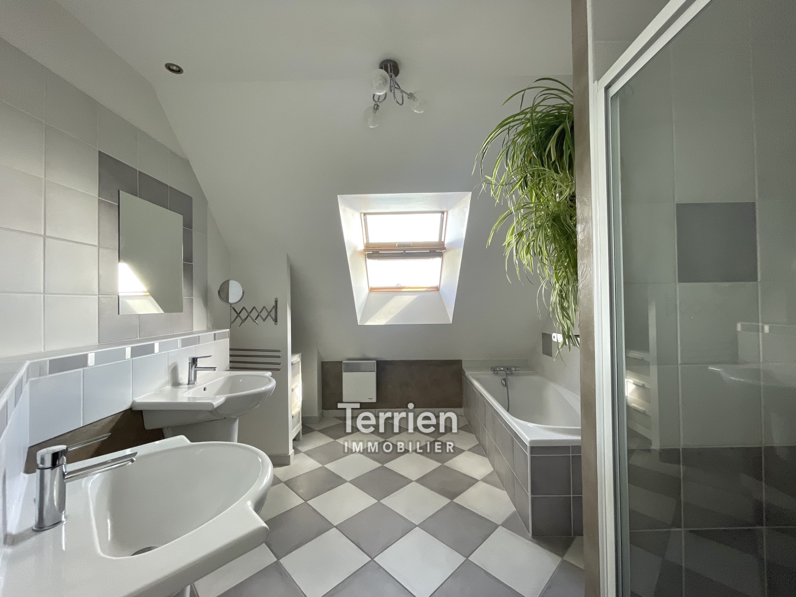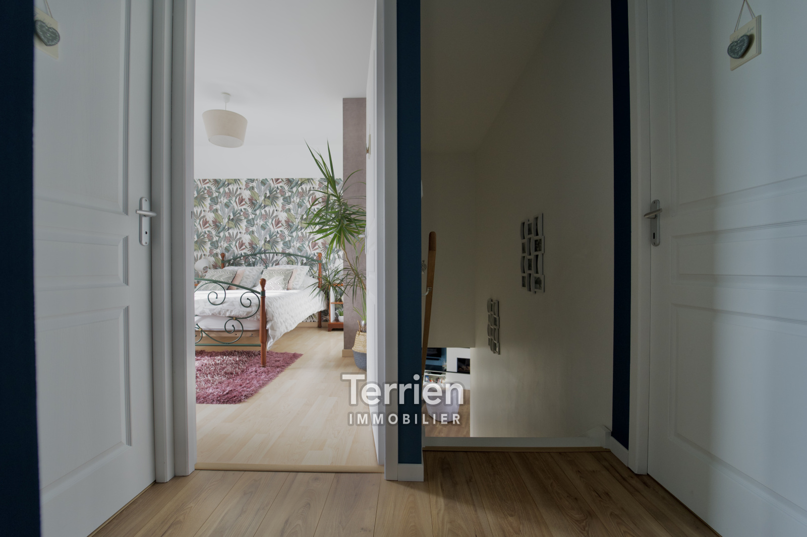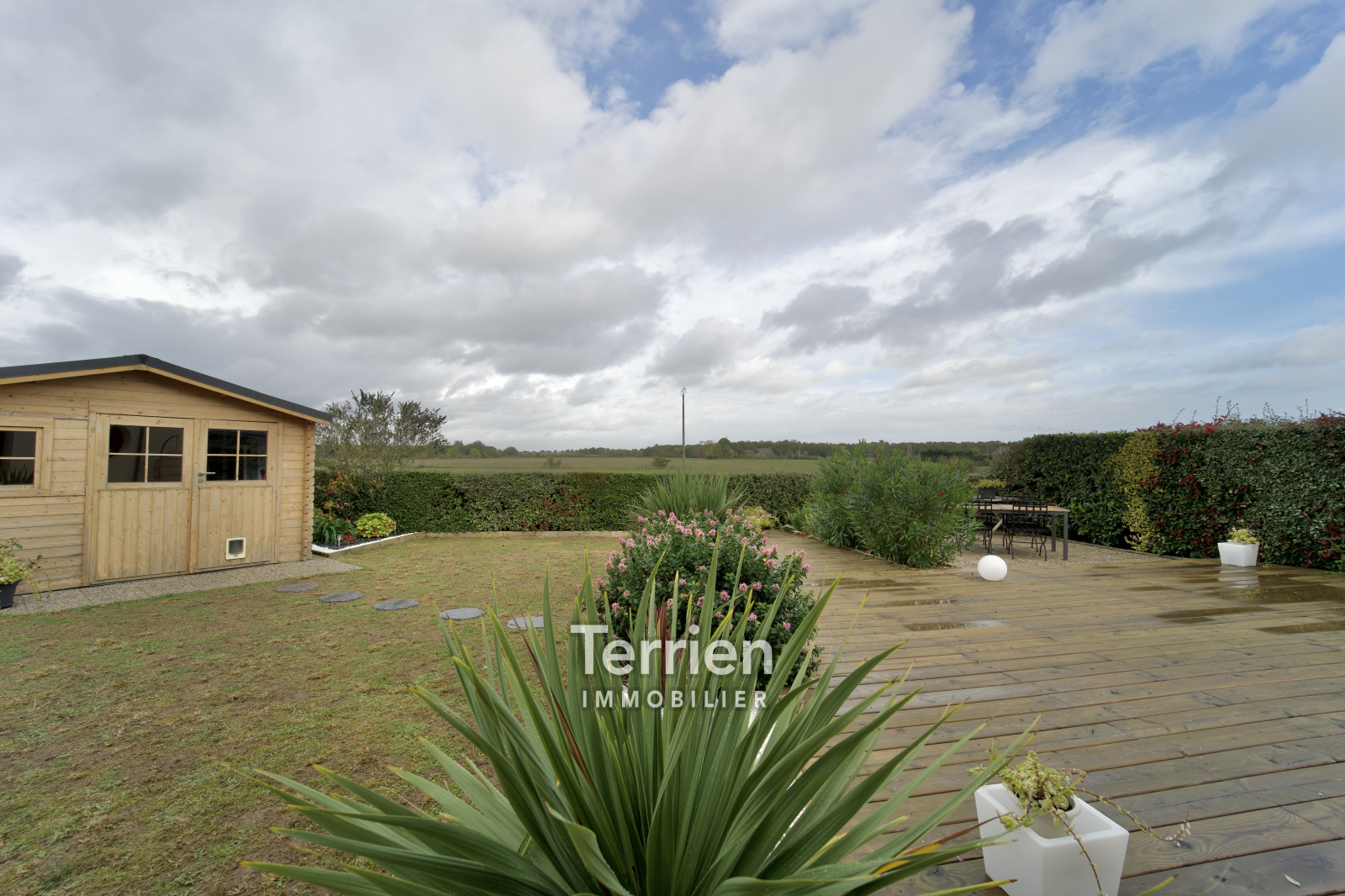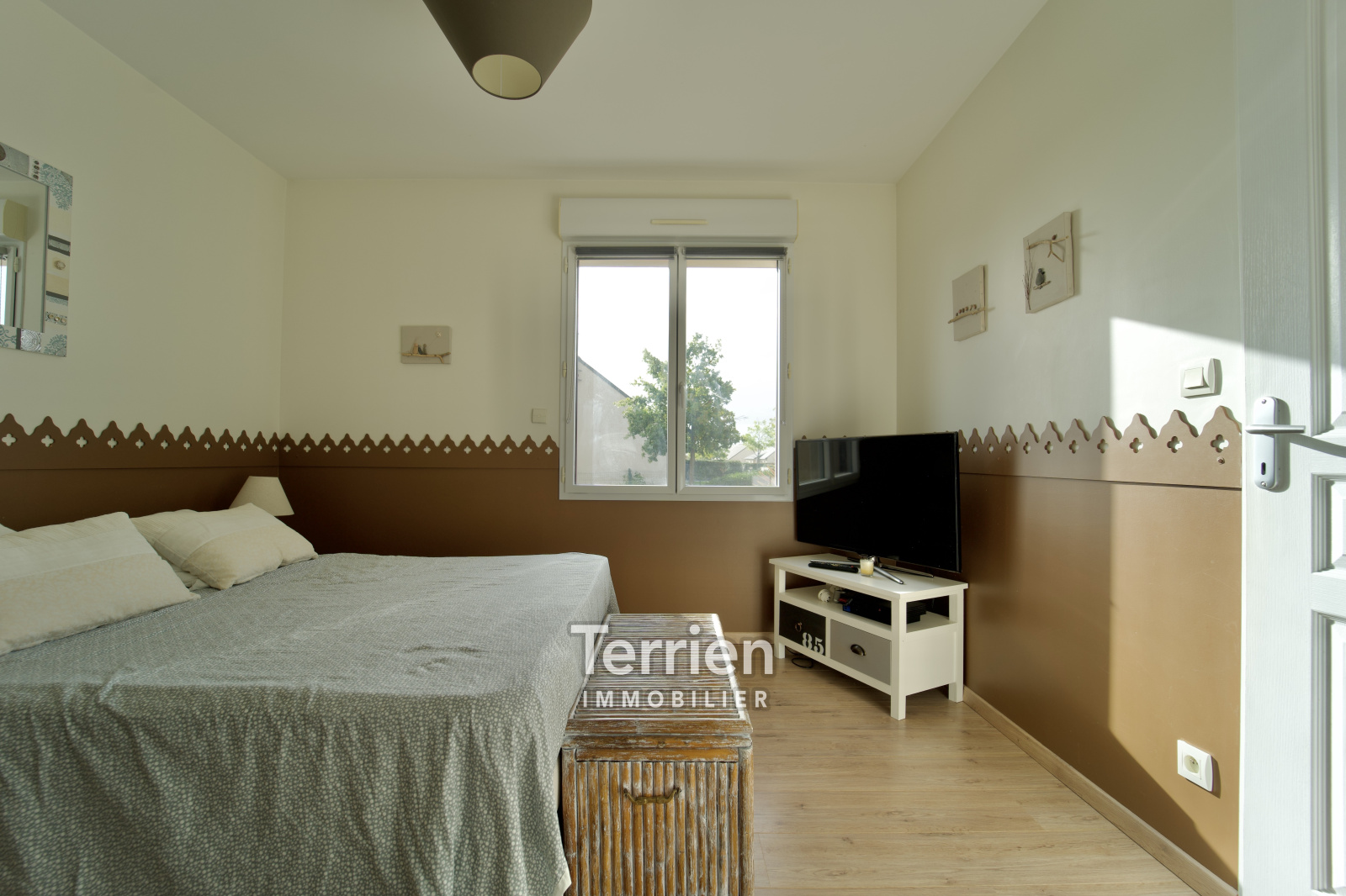 Une maison d'habitation calme et lumineuse avec vue sur la nature d'une surface habitable de 144m2 habitables sur une parcelle de terrain clos de 580m2. La maison est composée d'une entrée spacieuse avec placards qui dessert un chaleureux salon/séjour avec cheminée (gaz) et sol en parquet. Dans la continuité, une cuisine ouverte toute équipée disposant également d'une buanderie. Une suite parentale avec placard et salle d'eau et un WC indépandant complète le RDC. L'étage se compose de 3 chambres fonctionnelles, un bureau avec placard, une salle de bain (douche, baignoire et double vasque), une pièce de rangement (dressing) et un WC indépendant. Ce bien dispose d'un double garage avec portails motorisés, d'un espace extérieur paysagé et aménagé (terrasse bois) et d'un chalet bois pour le rangement de matériels. De nombreux travaux de rénovation ont été effectués - Maison sans travaux agréable à vivre- Proche gare - DPE D - Honoraires à charge vendeurs - TERRIEN IMMOBILIER