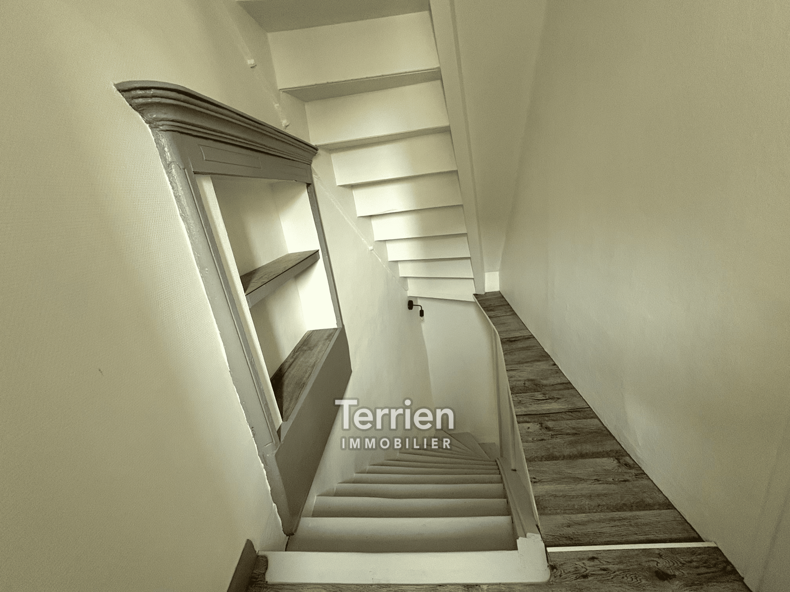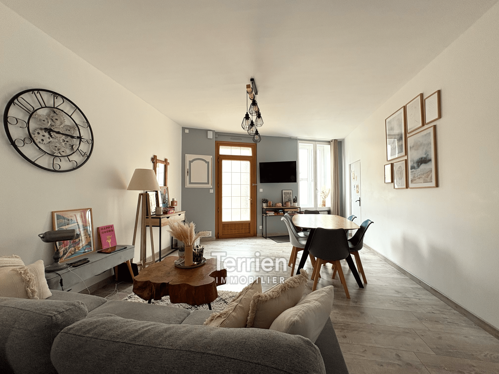 Située à seulement 5 minutes de Chalonnes, sur la commune de Saint Laurent de la Plaine, découvrez cette charmante maison de bourg rénovée avec soin, à proximité directe des commodités, commerces et écoles, bénéficiant d'une cour extérieure ainsi qu'un garage. Au rez-de-chaussée, la maison s’ouvre sur un accueillant et spacieux séjour, suivi d'une cuisine modernisée et équipée (four, plaques de cuisson à induction, hotte aspirante). Un WC séparé avec placard, ainsi qu’un espace buanderie complètent ce niveau. Au premier étage, le palier dessert une vaste chambre avec dressing, une salle d'eau refaite à neuf avec une douche, une vasque et un sèche-serviettes, ainsi qu’un WC séparé. Au troisième niveau, la maison propose un grenier de 37 m² avec des tomettes au sol permettant un bel espace de stockage. Le bien dispose également d’un extérieur sur cour avec une dépendance abritant la pompe à chaleur, ainsi qu’un garage de 25 m² permettant de stationner un véhicule. Cette maison prête à l’emploi se révèle être idéale pour les primo-accédants. Elle propose une rénovation récente, notamment un tableau électrique aux normes, des huisseries en bon état, et un système de chauffage efficace via une pompe à chaleur. L’assainissement est conforme. DPE C. Honoraires à charge acquéreur. TERRIEN IMMOBILIER. Les informations sur les risques auxquels ce bien est exposé sont disponibles sur le site www.georisques.gouv.fr. Pour plus d'informations ou pour organiser une visite, contactez Aymeric Viot : 06 03 77 04 02. Agent commercial - EI VIOT AYMERIC - immatriculé au R.S.A.C. d'Angers sous le numéro 977866425.