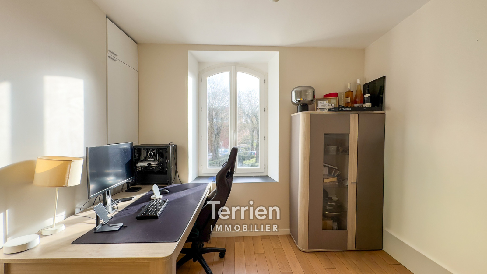 EN VENTE Chez TERRIEN IMMOBILIER. Situé dans le secteur prisé de la place du Lycée, cet appartement au 1er étage plein de charme de 52 m² vous attend au sein d'une copropriété bien entretenue, dotée d'une cour commune et d'un espace sécurisé pour vélos. La pièce de vie traversante, baignée de lumière, se compose d'un salon-salle à manger avec un superbe mur en pierre apparente, tandis que la cuisine ouverte, moderne et entièrement équipée, s'ouvre sur cet espace convivial. Côté pratique, vous trouverez un espace de rangement ainsi qu'une buanderie. Pour le coin nuit, deux chambres spacieuses avec placards intégrés vous accueillent, accompagnées d'une salle de bains récente et raffinée. Ce bien au caractère unique présente également un joli parquet et une grande cave pour le stockage. Copropriété composée de 4 appartements gérés par un syndicat bénévole. Les plus, cour partagée pour profiter de l'extérieur, parking à vélos sécurisé avec accès facile. Appartement proche de tous les commerces, transports et écoles. DPE D réalisé en 2021 - Honoraires à charge acquéreur - Terrien Immobilier.