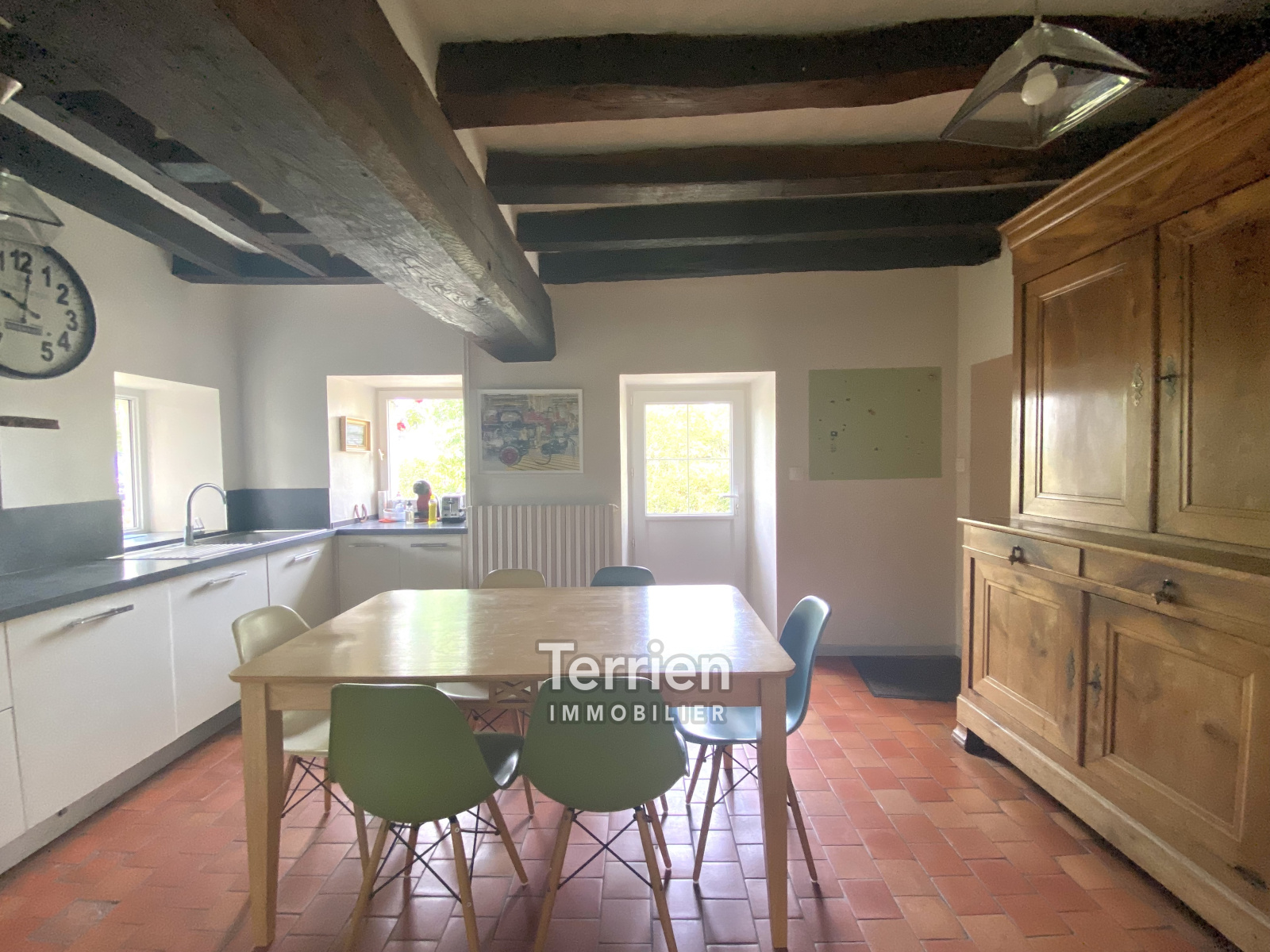 Sur la paisible commune de Saint Germain des Prés, à seulement 20 minutes d'Angers. Une longère de 1820 dotée d'une surface habitable de 177m2, dans un environnement agréable et verdoyant. Une maison de caractère rénovée dotée d’un charme indéniable, une entrée spacieuse qui dessert le salon-séjour chaleureux avec cheminée à foyer ouvert et ses poutres apparentes, une cuisine aménagée équipée et moderne avec un coin arrière-cuisine et point d'eau. Côté nuit toujours au rez-de-chaussée, deux chambres agréables, une salle d'eau ainsi qu’un WC complètent ce niveau. A l’étage, un couloir avec rangements dessert trois chambres supplémentaires avec vue sur la nature, ainsi qu'une salle de bain. Dans la continuité, un grenier d'environ 70m2 accessible par l'extérieur reste aménageable pour agrandir l'espace de vie de la maison ou faire un logement annexe. En extérieur, deux dépendances viennent compléter ce bien, ainsi qu'un terrain de plus de 1500 m² sans aucun vis à vis - Proche autoroute et gare. DPE E. Honoraires à charge vendeur. TERRIEN IMMOBILIER