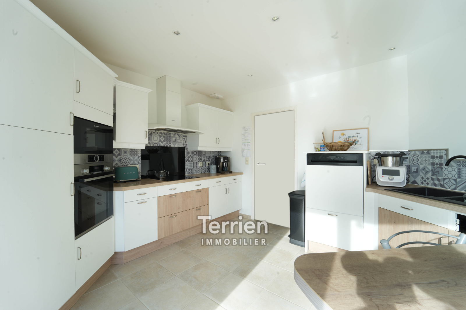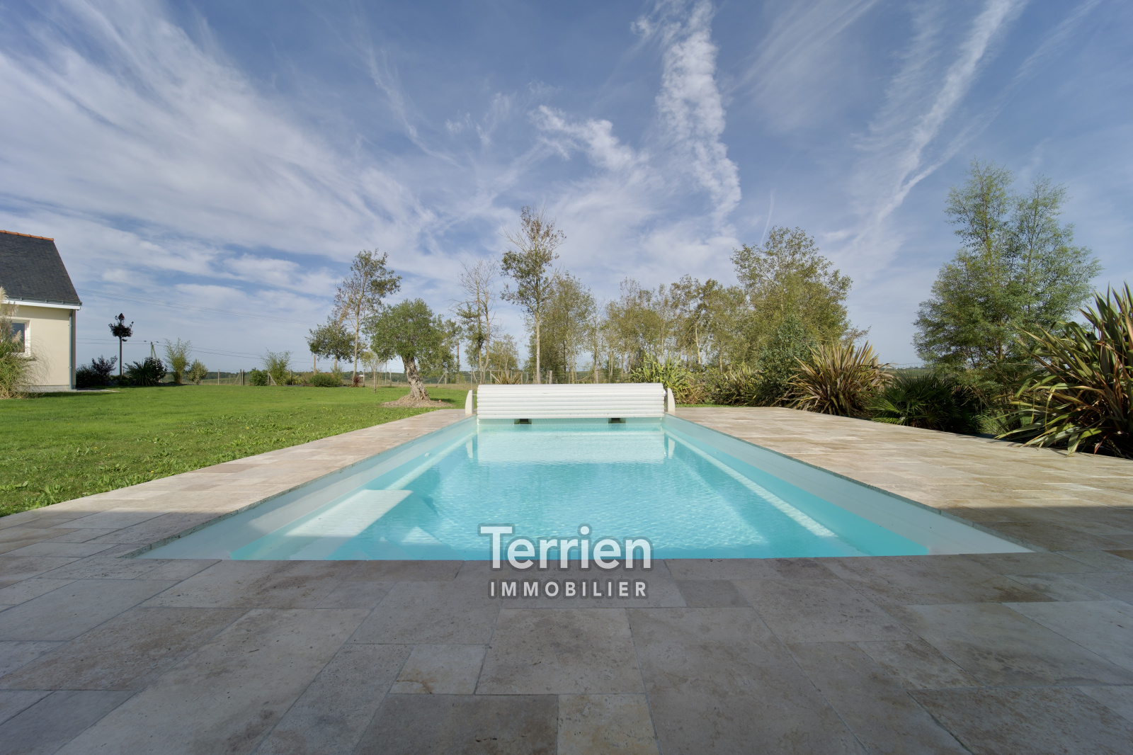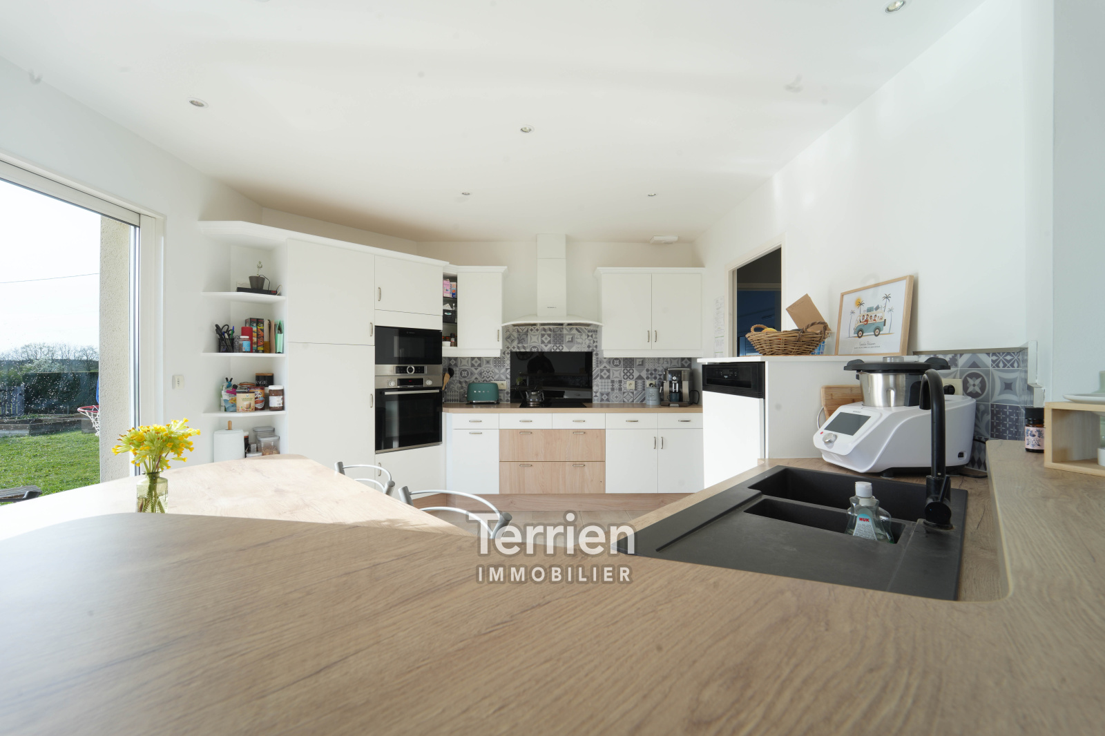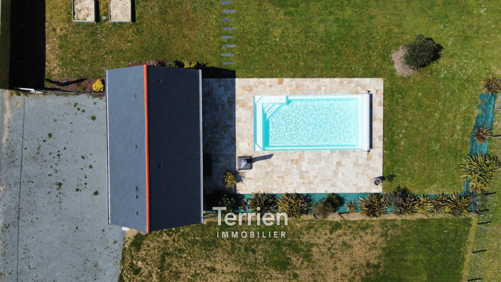 Une belle maison familiale tout confort orientée plein sud et vers sa piscine, située dans un cadre très agréable avec vue sur les vignes et la nature, sur une grande parcelle de 17810m2. La maison développe 177m² habitable de plain pied comprenant une pièce de vie 50m2 avec salon/séjour et une cuisine équipée et son accès direct sur la terrasse. Toujours de plein-pied, on retrouve une suite parentale avec salle d'eau moderne, ainsi que quatre autres chambres avec une salle d'eau commune. Côté extérieur une piscine de 8x4 mètres chauffée par une PAC, un pool house aménagé avec une cuisine d'été très agréable orientée vers la piscine, le local technique et un WC. La maison dispose d'un système de chauffage au sol par géothermie, ainsi qu'un poele à bois très efficient. Le bien bénéficie également d'un grand garage avec portail motorisé pouvant acceuillir 2 véhicules, un grenier, et une cave en sous-sol. DPE B - Honoraires à charge acquéreur- TERRIEN IMMOBILIER